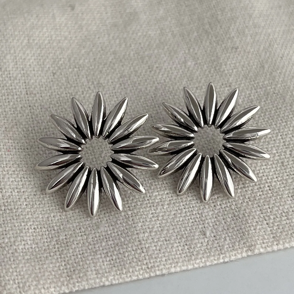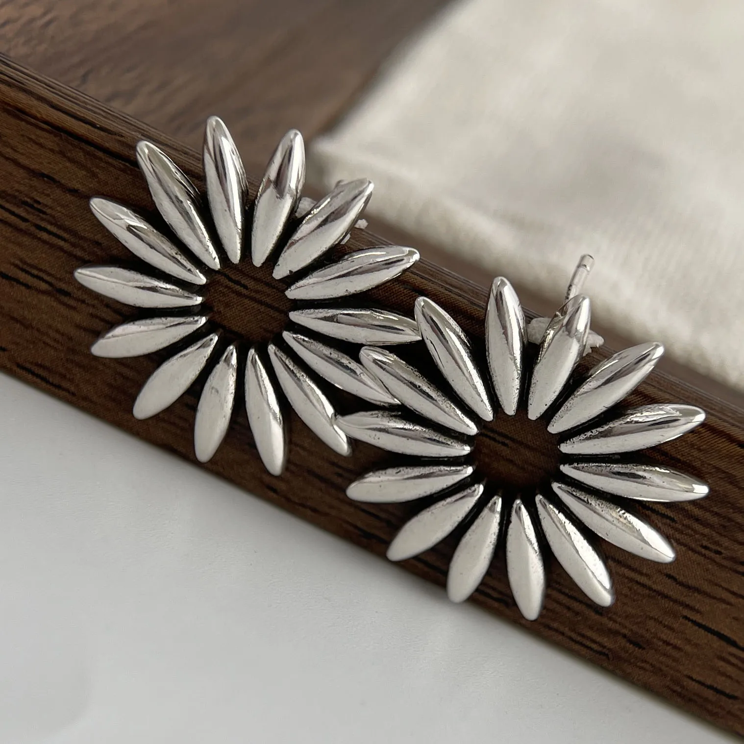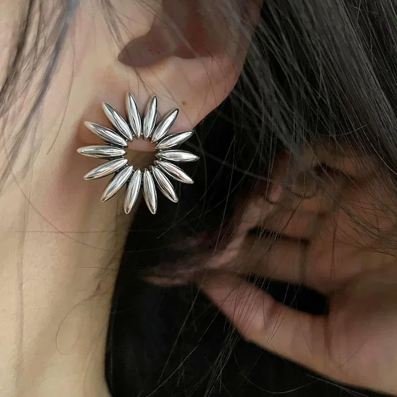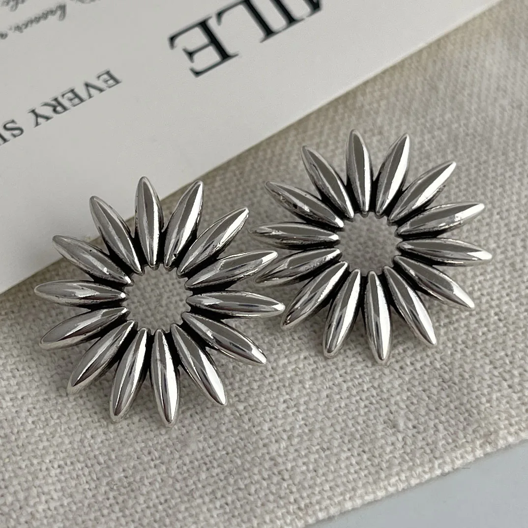 925 Sterling Silver Vintage Square Earrings For Women Retro Big Sunflower Earring Jewelry Prevent Allergy Party Accessories Gift