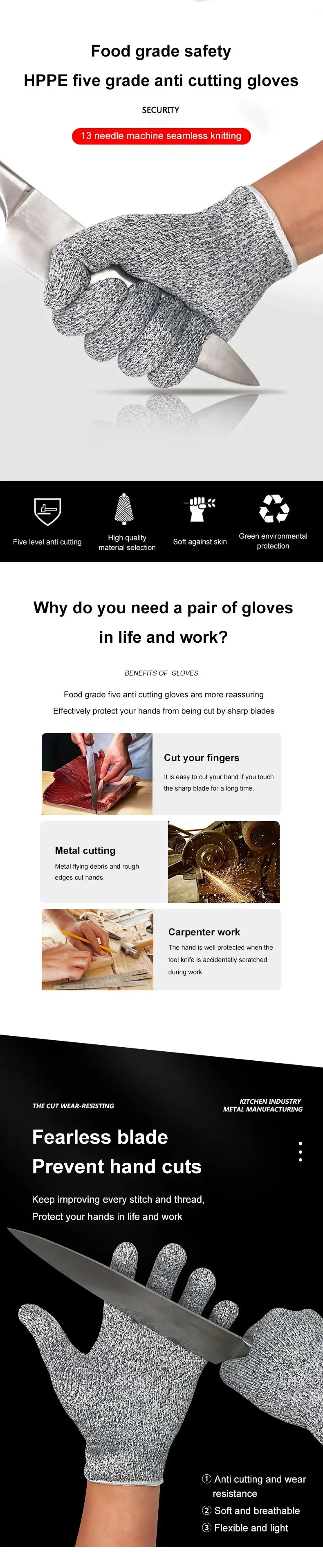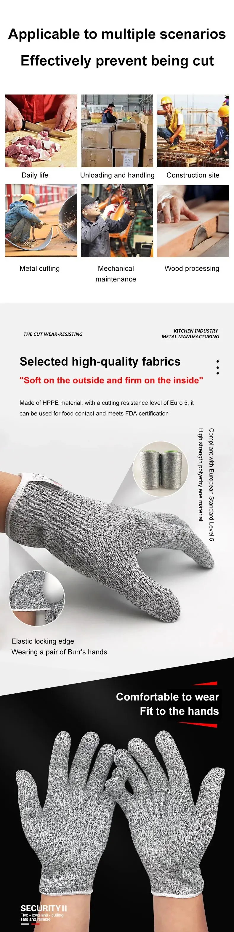 100 reviews for A Pair Anti Cut Proof Gloves Hot Sale Grey Black Anti Cut Level 5 Safety Work Gloves Glass Cutting Safety Protection
