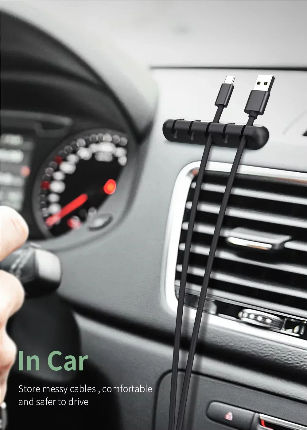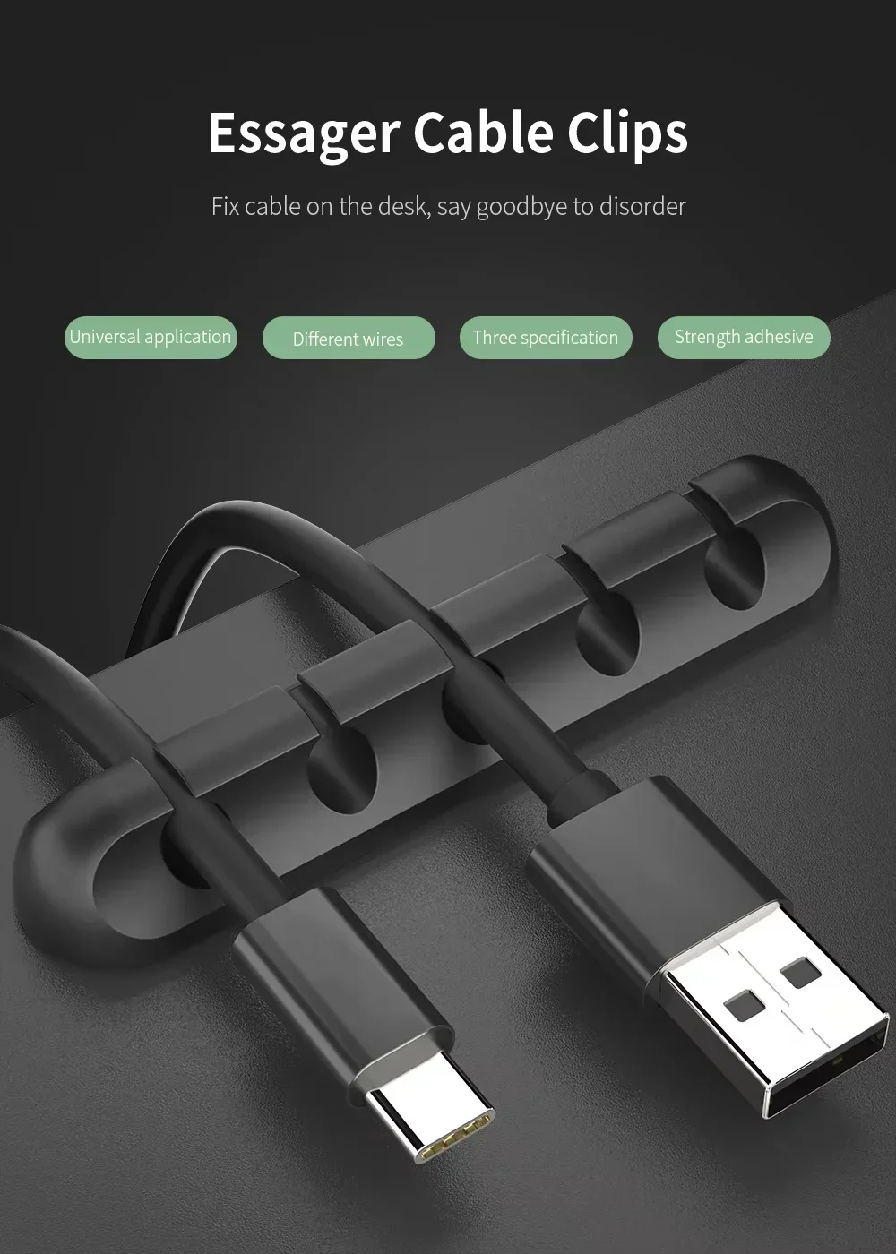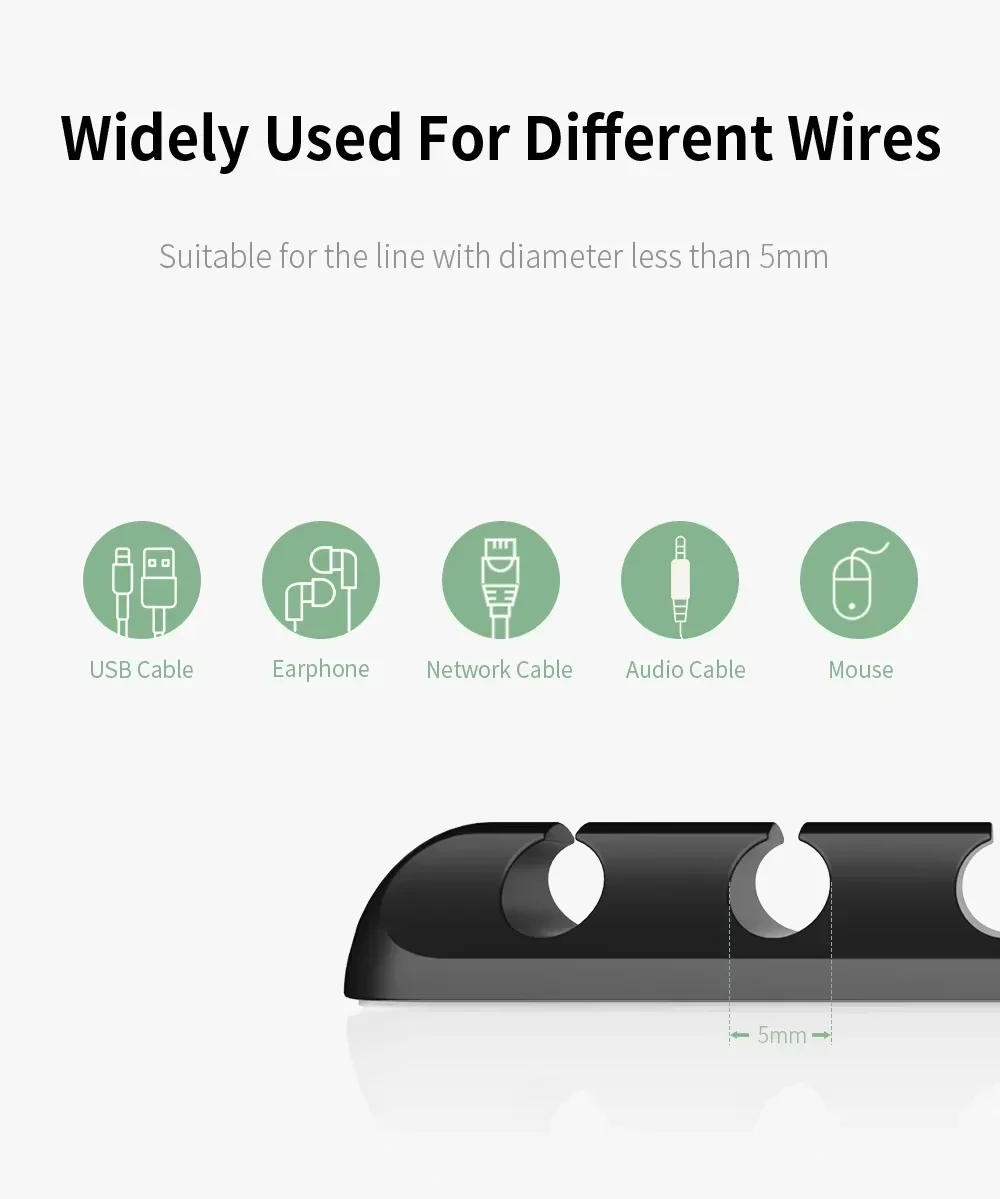 his desk cable management is designed with a diameter of 6mm, our daily USB cable all can be used. you can use this cord organizer organize the messy cables, such as office desk, cluttered countertops, bedside tables and car inner walls, make daily life just a little easier and more organized.