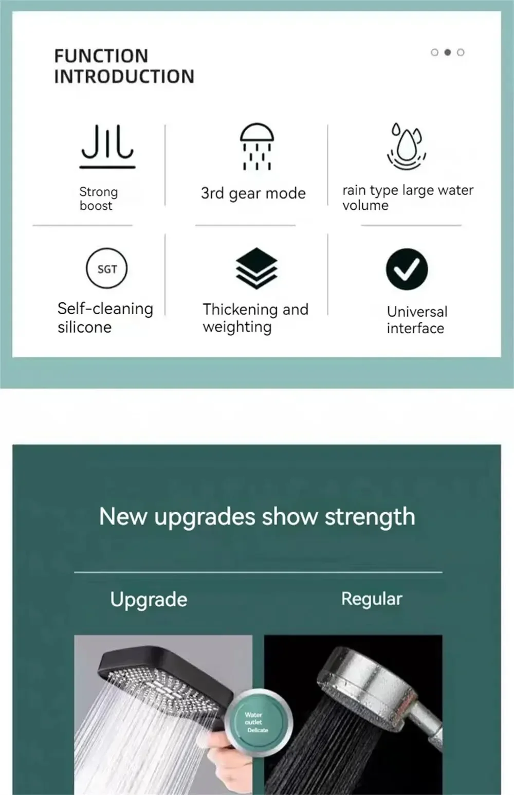 【High Pressure Shower Head】- This high pressure shower adoptspressurization technology, which can effectively increase the water pressure. Good for low water pressure.