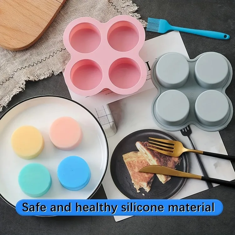 Air Fryer Egg Mold Round Shape Eggs Mold 4 Cavity Non-Stick Silicone Air Fryer Egg Pan Egg Steamer Cooking Mold Fried Egg Tool