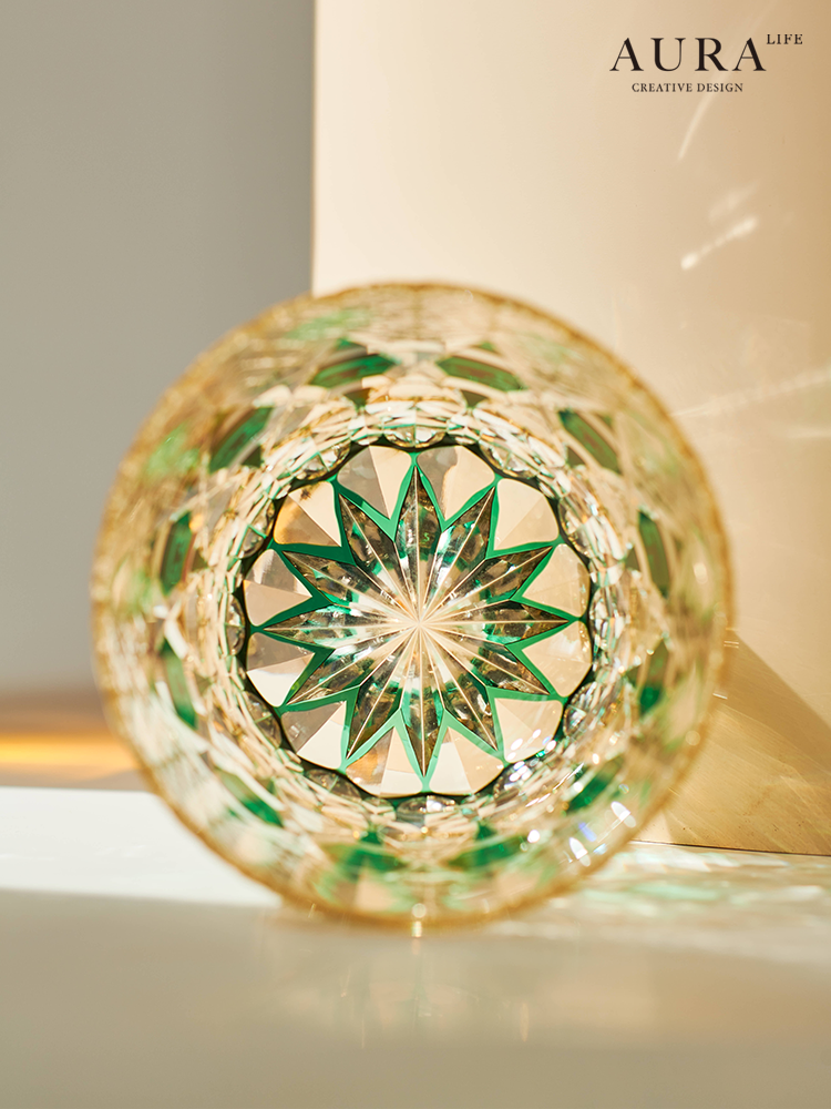 AURA’S Emerald Green Dawn Edo Kiriko hand-carved crystal glass Japanese-style high-end whiskey glass