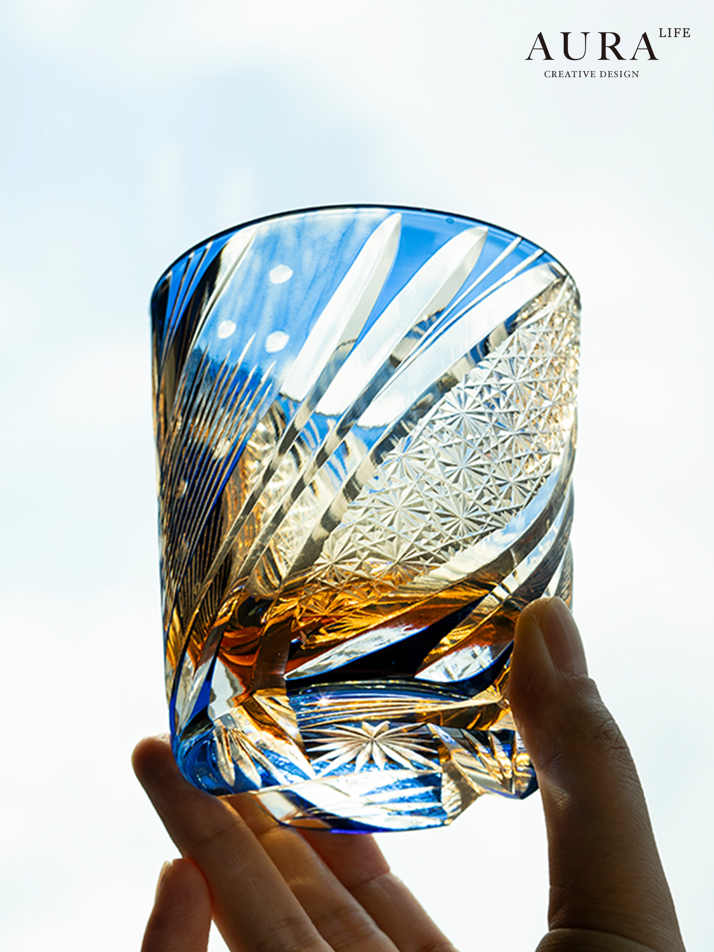 AURA’S high-end hand-carved crystal cup personalized lightning Edo Kiriko cup whiskey cup gift box