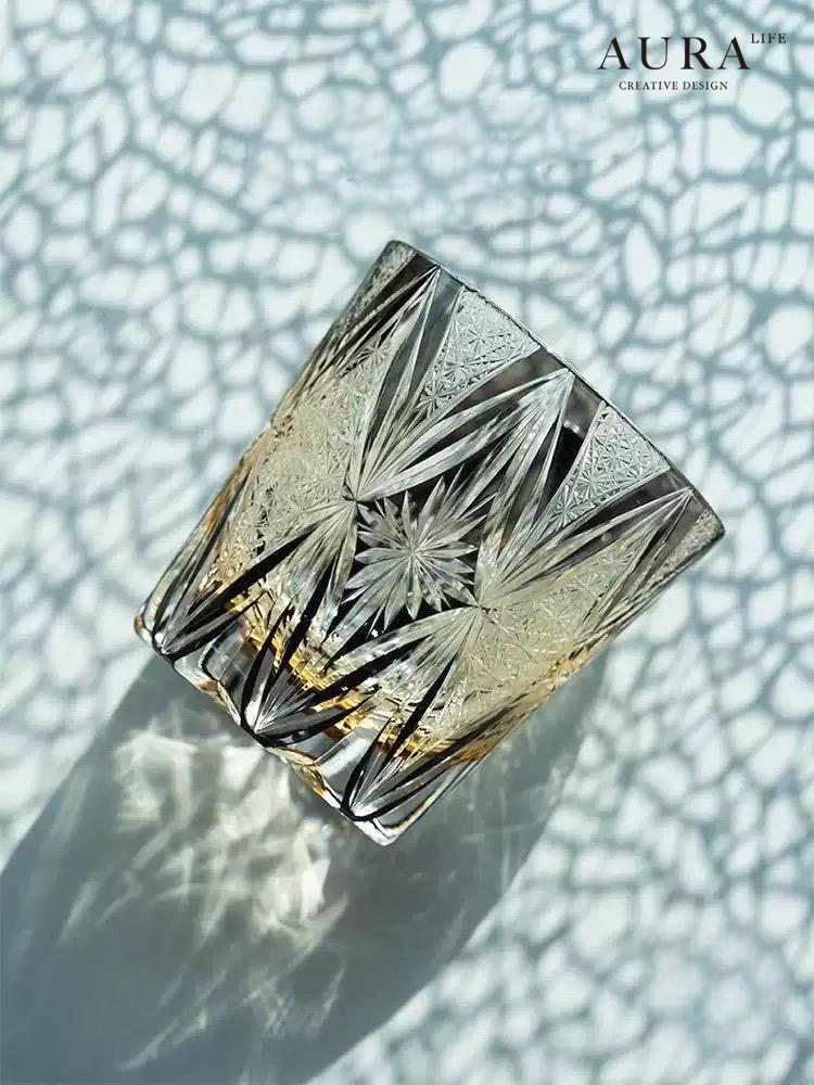 AURA’S Edo Kiriko hand-carved high-end crystal cup starburst rock cup whiskey cup gift box
