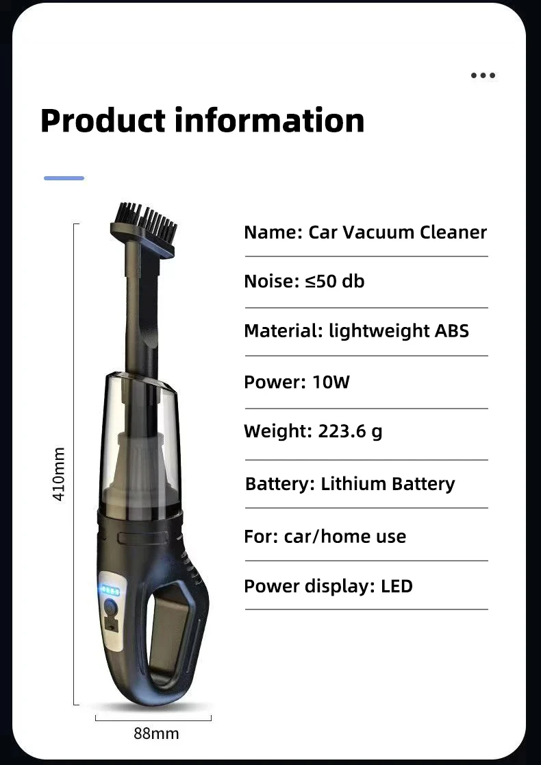 Equipped with powerful suction, this handheld vacuum cleaner efficiently removes dust and debris, ensuring a clean environment.