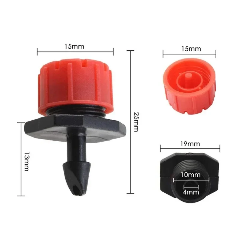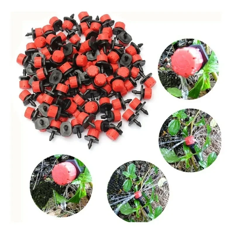 -ADJUSTABLE DRIPPER: 8-OUTLET. Adjustable – Its flow adjustment means watering can be varied from a big spray, to gentle stream pattern to a drip action or shut off completely. Simple finger-tip cap control for flow adjustment.