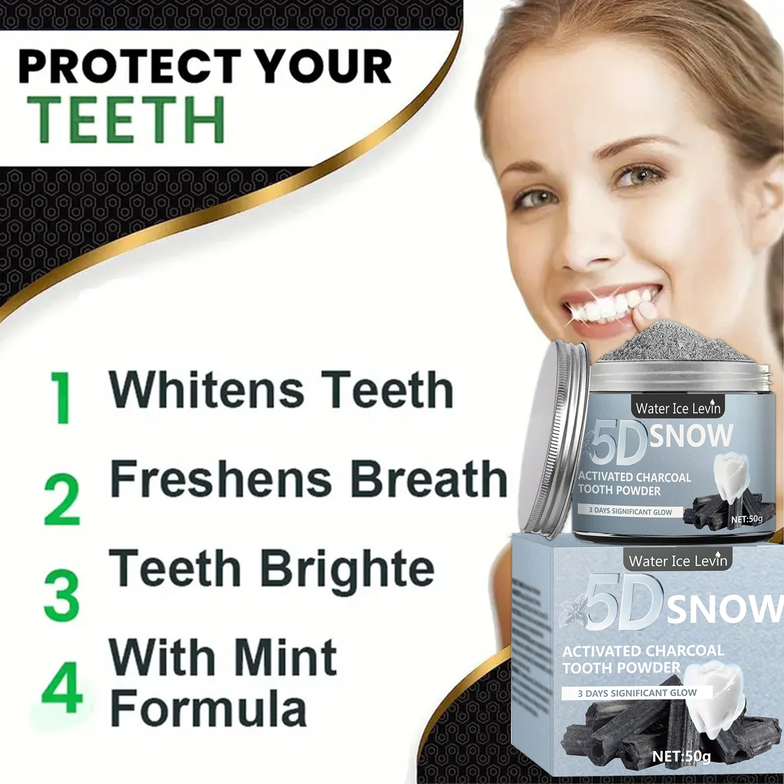 Bamboo Charcoal Teeth Whitening Powder – Natural Whitening and Deep Cleaning for Men and Women, Fresh Breath Daily Use Toothpaste, 1 Piece