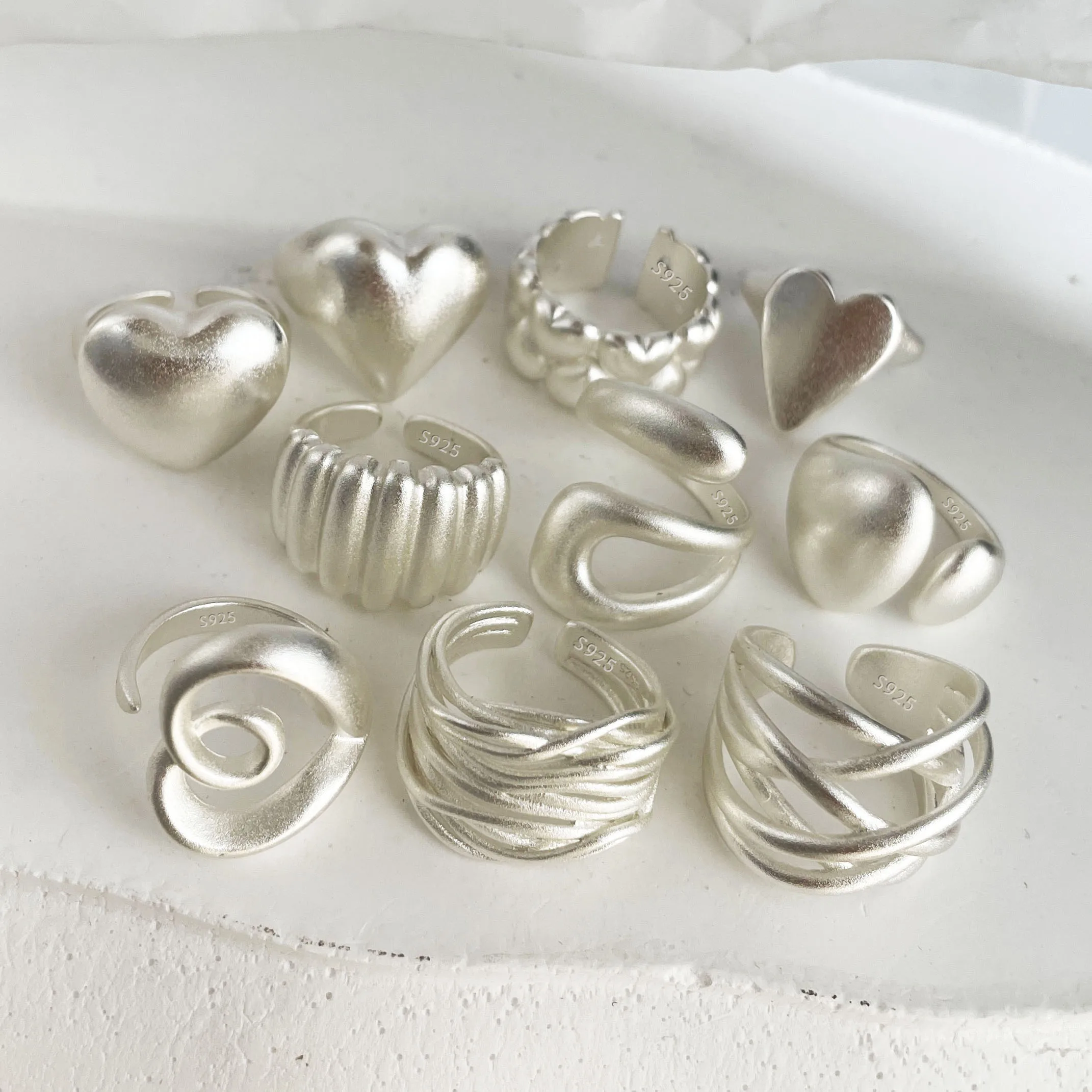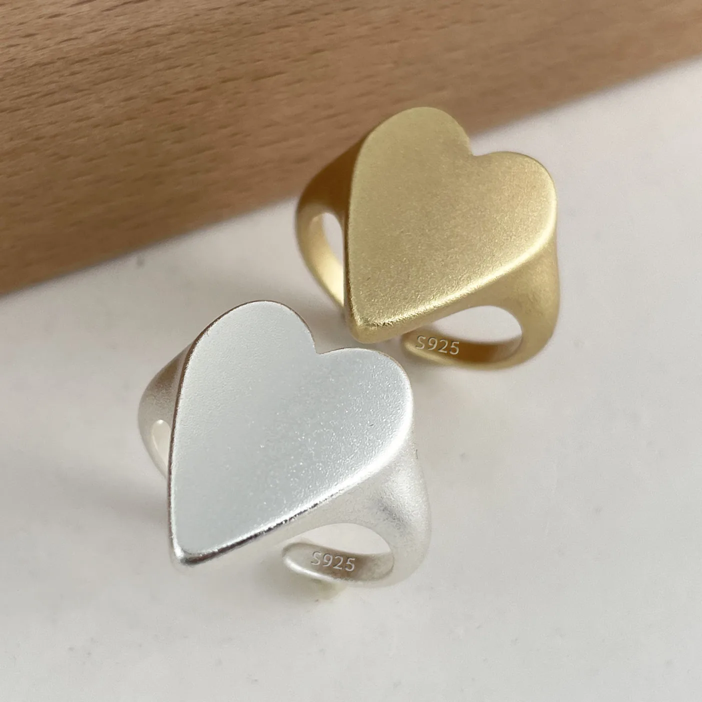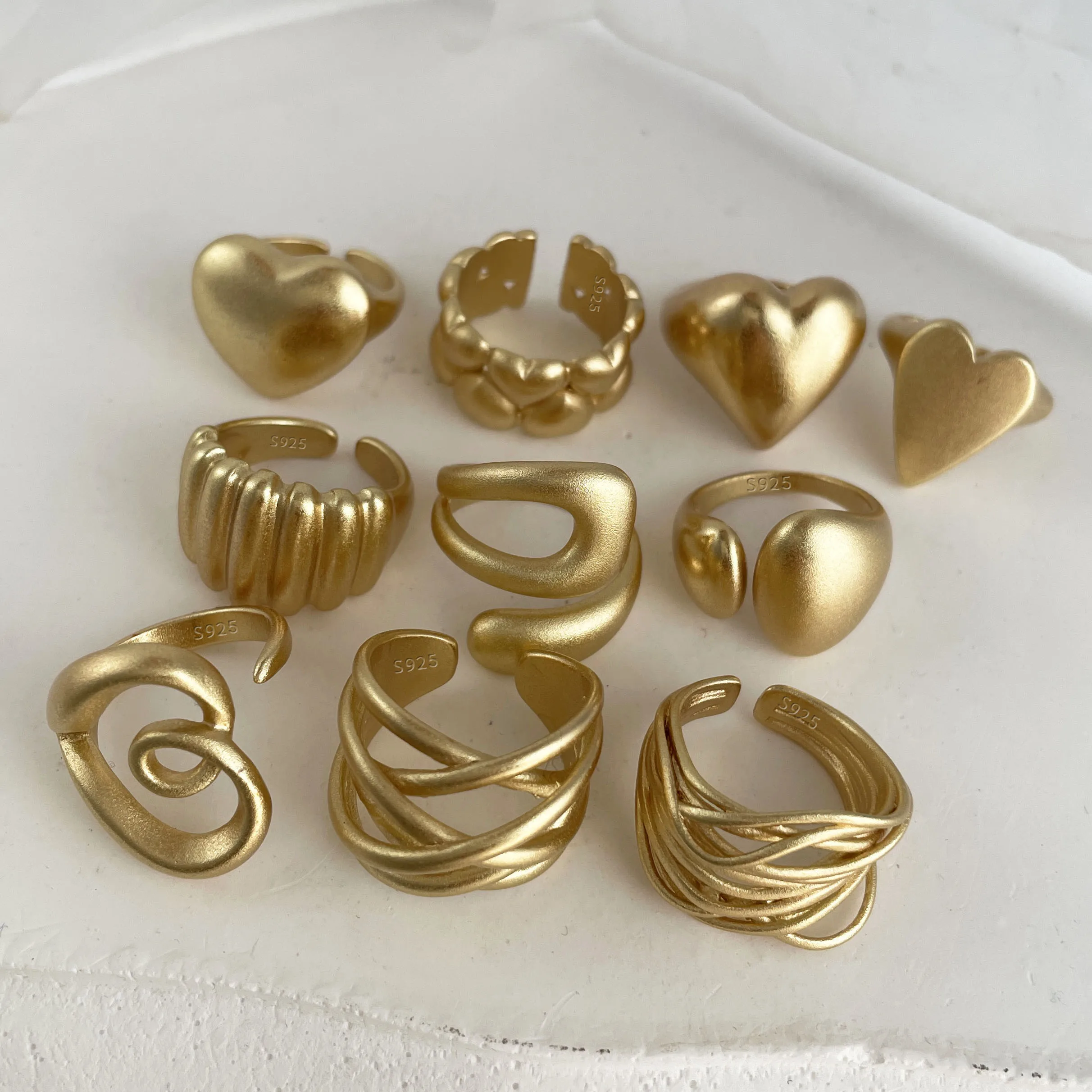 BF CLUB 925 Sterling Rings for Women Fashion Geometric Handmade Irregular Gold Heart Ring Party Birthday Gift