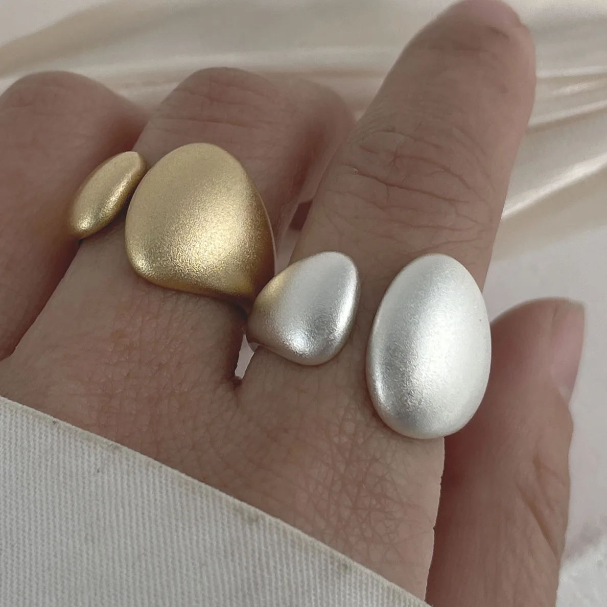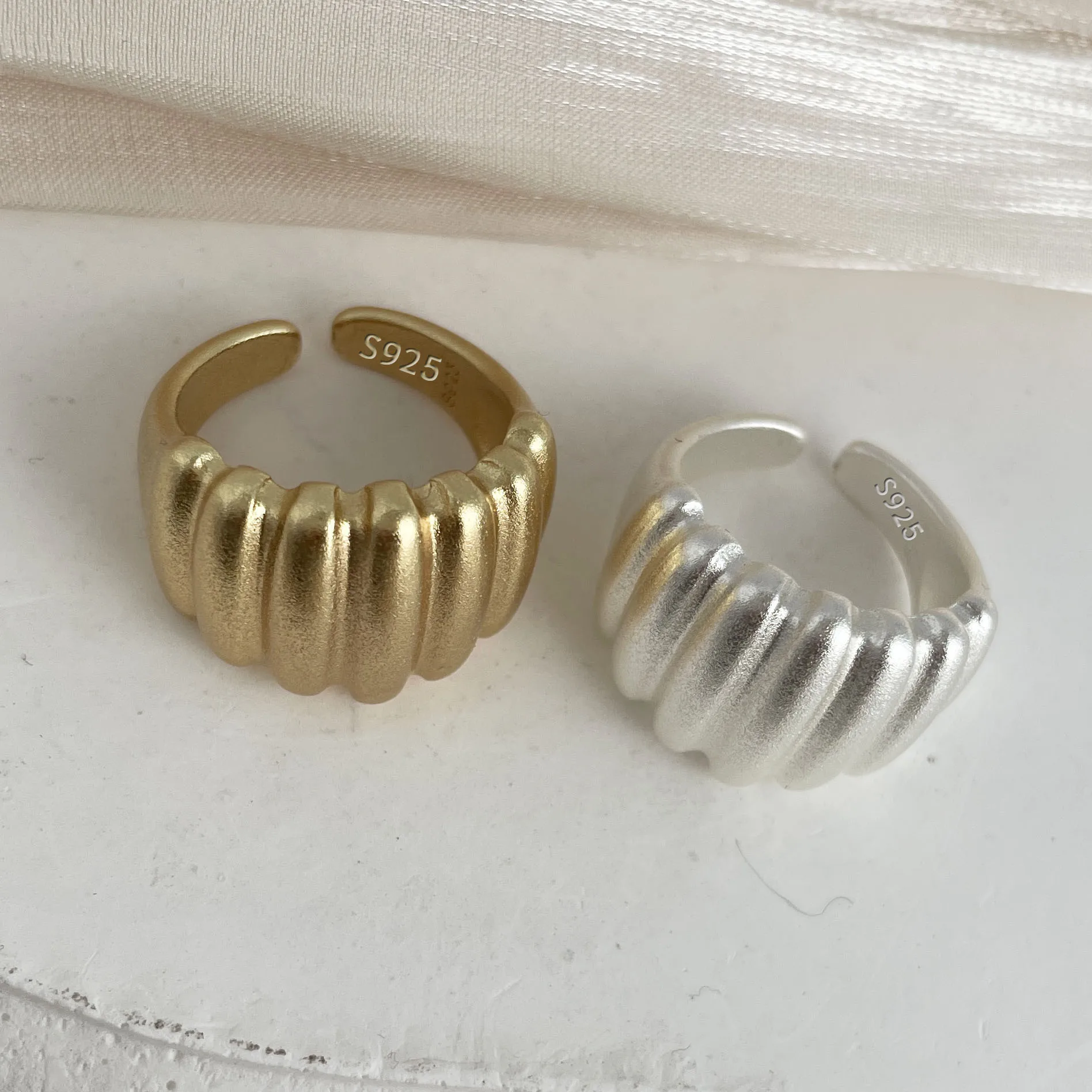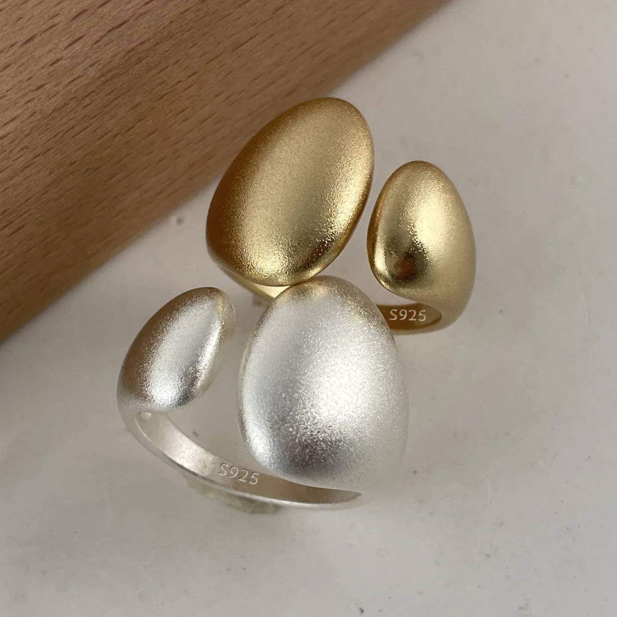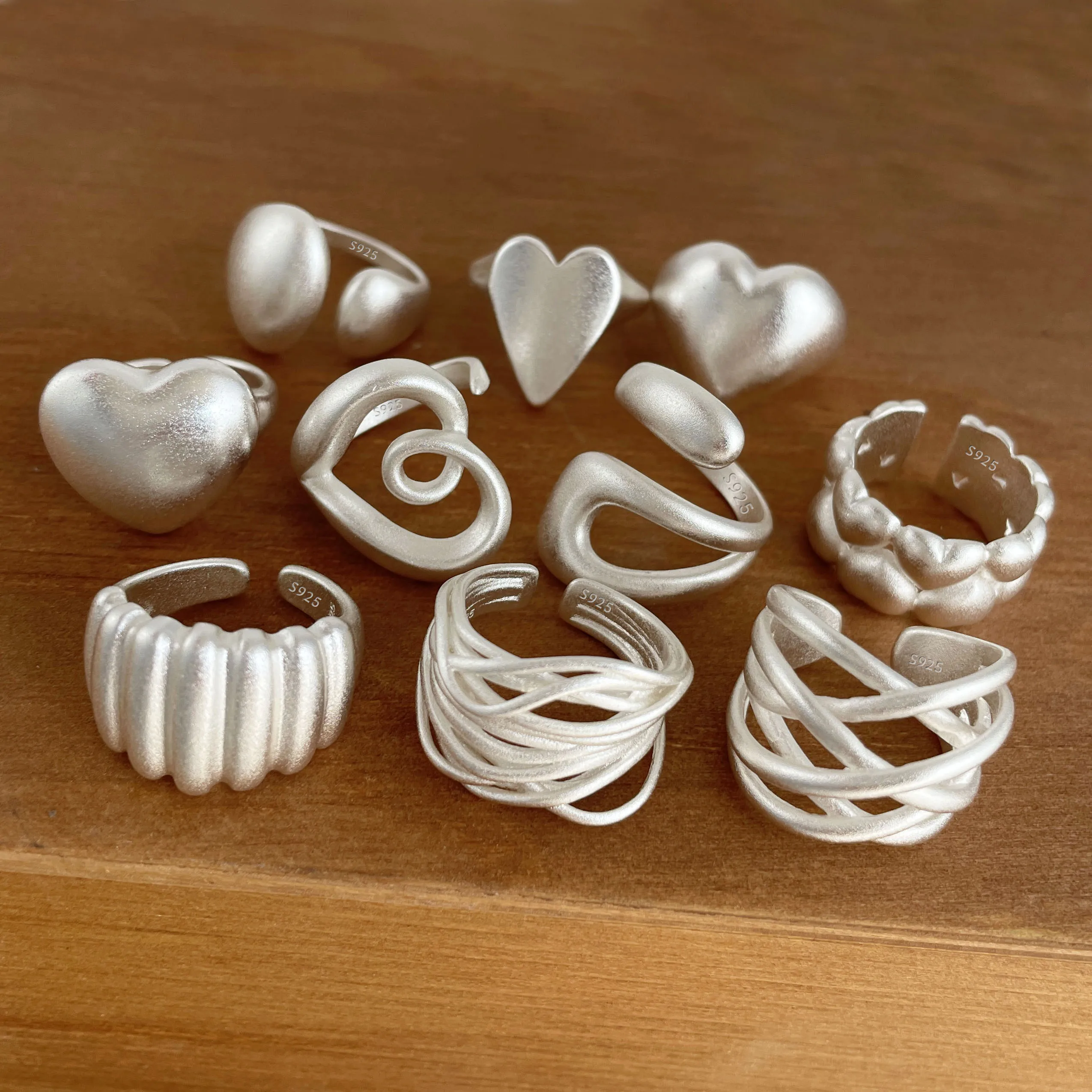 BF CLUB 925 Sterling Rings for Women Fashion Geometric Handmade Irregular Gold Heart Ring Party Birthday Gift