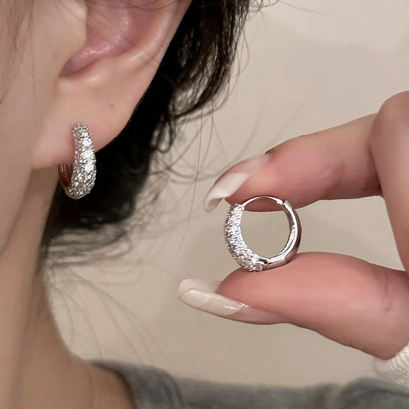 BF CLUB 925 Sterling Silver Earrings For Women Trendy Simple Zircon Round Earring Jewelry Prevent Allergy Party Accessories
