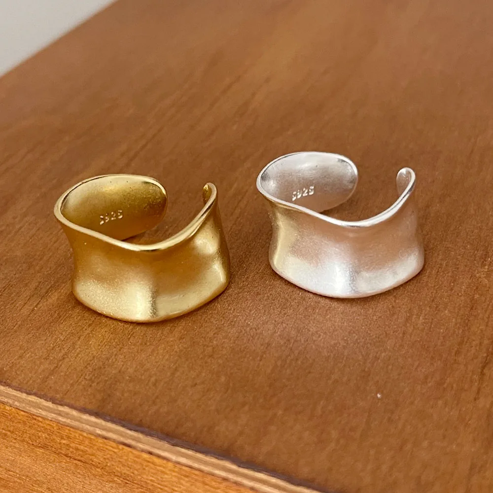 BF CLUB 925 Sterling Silver Rings For Women Simple Finger Open Vintage Gold Wide Flat Ring Allergy For Party Birthday Gift
