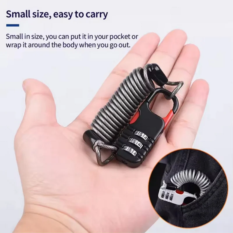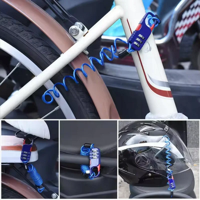 Bicycle Anti-Theft Motorcycle Three-Digit Password Combination Safety Rope Wire Rope Helmet Lock Multi-purpose Safety Rope Lock