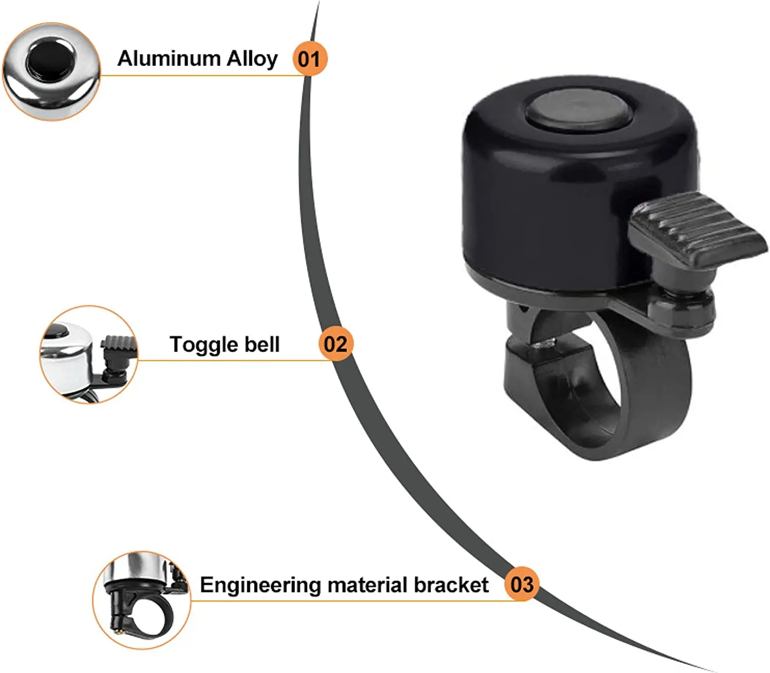 2.Material: The bicycle bells are made of quality aluminum alloy materials,sturdy and durable,anti-rust and anti-aging.The stable plastic base makes the bike bell have a long lifetime to use.