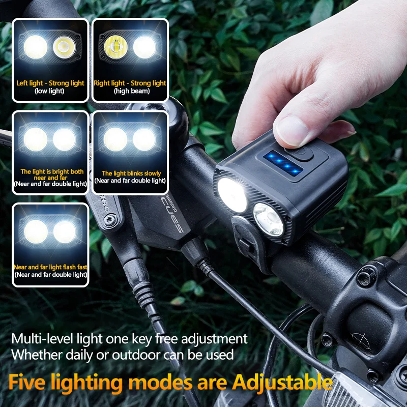 Bicycle Front Light Rechargeable MTB Mountain Road Bike Head Lamp Flashlight for Night Riding Power Display Cycling Accessories