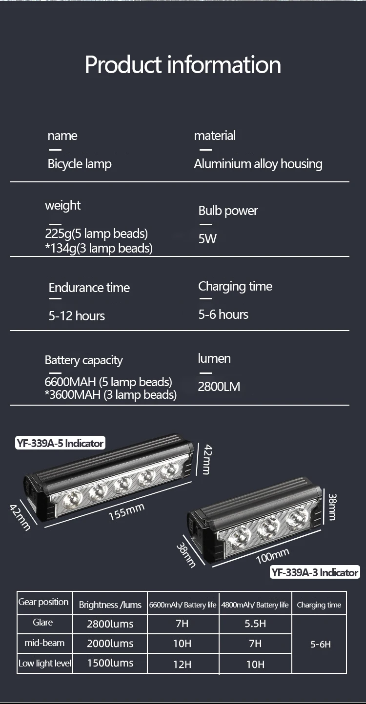 • USB Charging :The bike light can be charged via USB, making it convenient and easy to use.