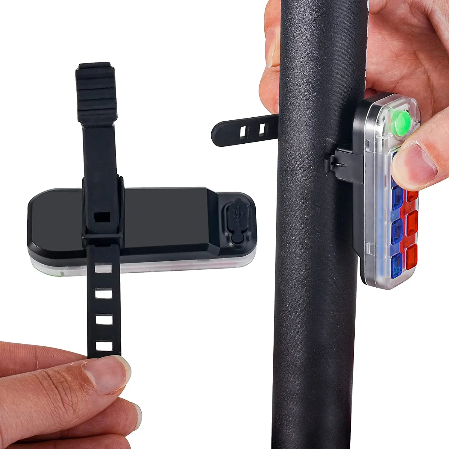 [ EASY TO USE ]:This signal light can not only be easily installed on your bicycle, skateboard, stroller, helmet, scooter, wheelchair or anywhere you can imagine, it can also be hung on running gear, dog collars, reflective vests, backpacks, belts, etc. Anywhere on the seat belt or clothing.