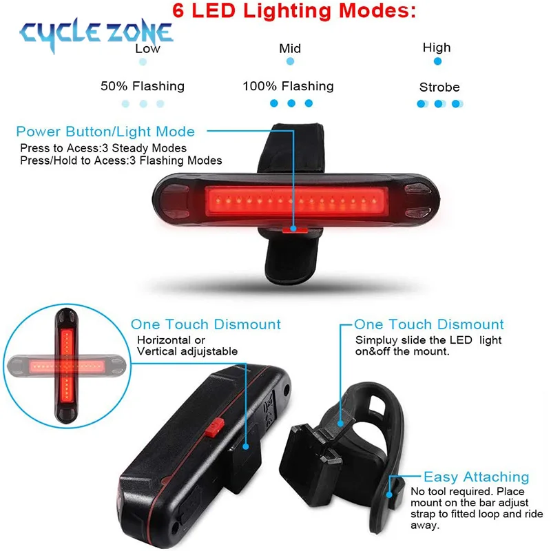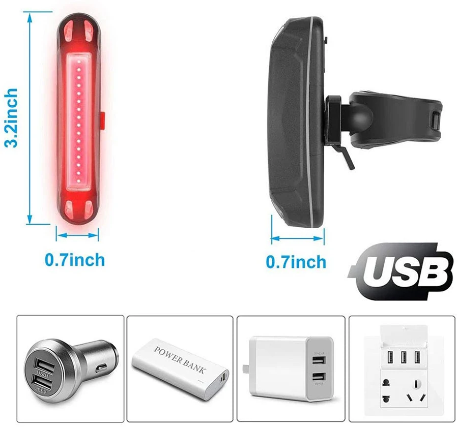 USB rechargeable: connected to USB cable, ultra bright bike can be charged by computer, power bank or other electronic equipment with USB interface, 3 hours are enough to fully charge the light, then the bike tail light is durable for a long time use