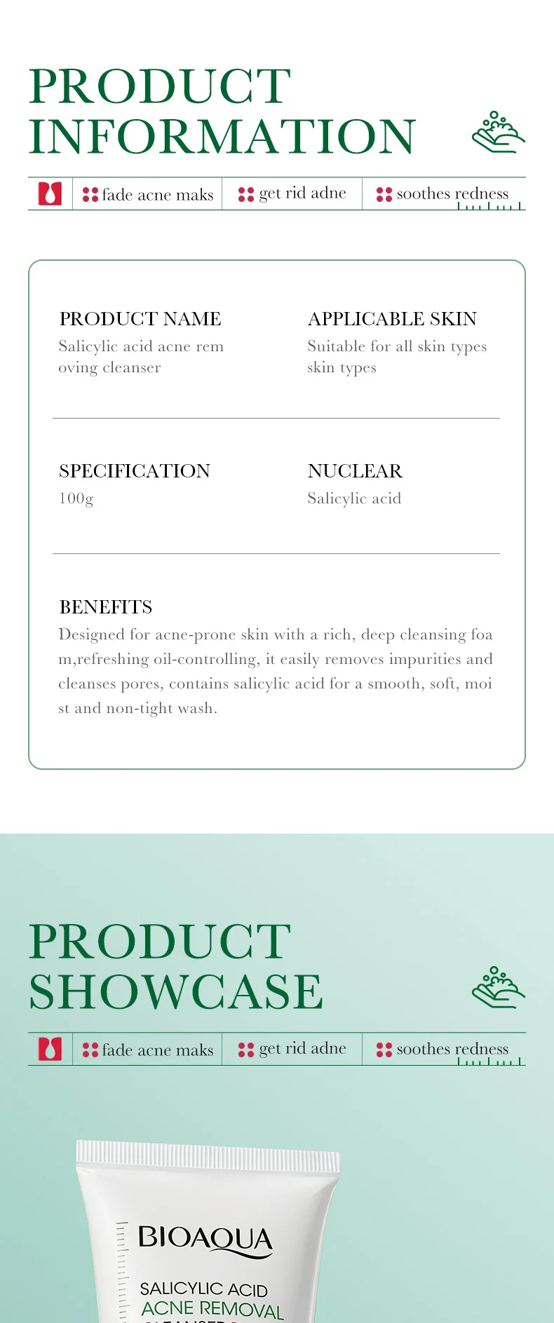 BIOAQUA Salicylic Acid Facial Cleanser Acne Treatment Moisturizing Oil Control skincare Face Wash Foam Face Cleanser Skin Care