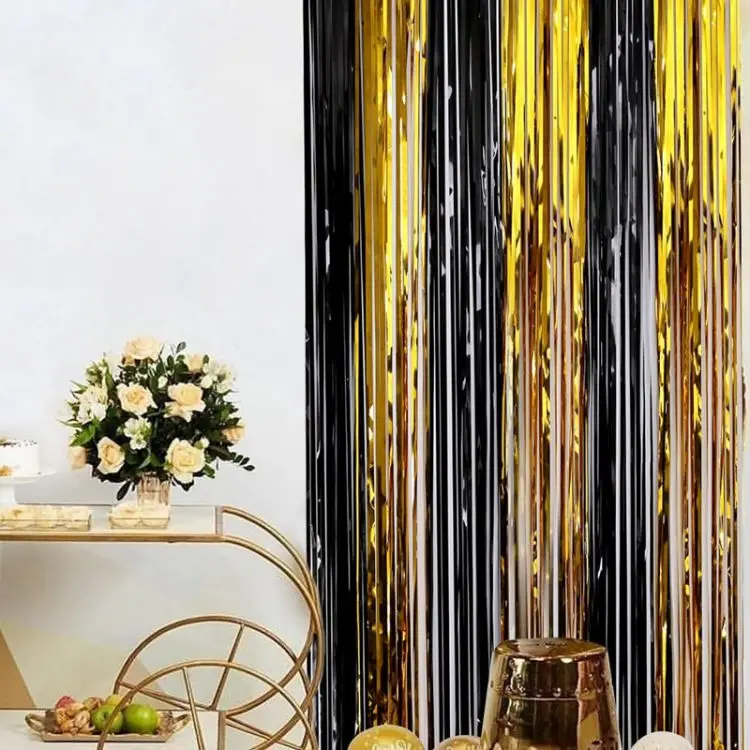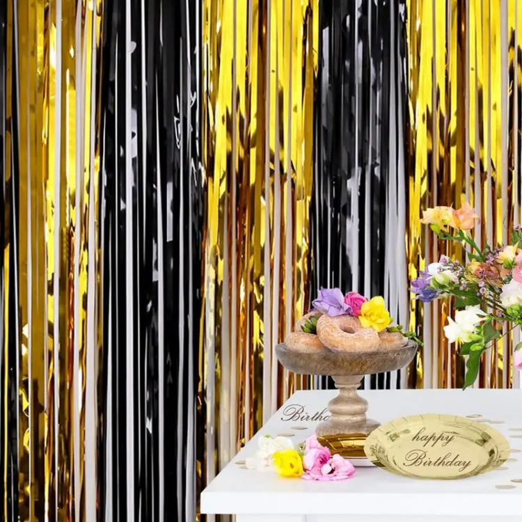 Birthday Party Decorations Backdrop Curtains Glitter Black Gold Tinsel Fringe Foil Curtain Background Wedding Adult Anniversary