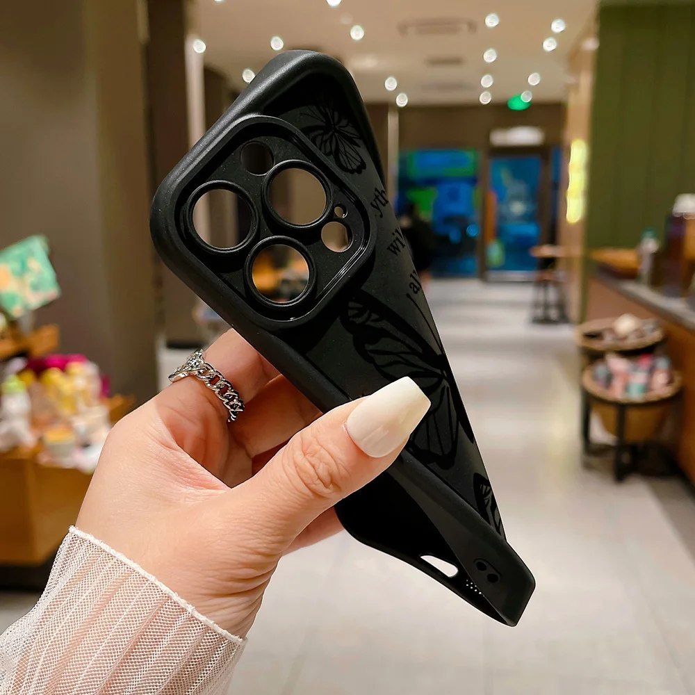 Black Butterfly Silicone Phone Case For iPhone 11 13 14 12 15 17 16 Pro Max XR XS X 7 8 Plus SE 2020 2022 Candy Color Soft Cover