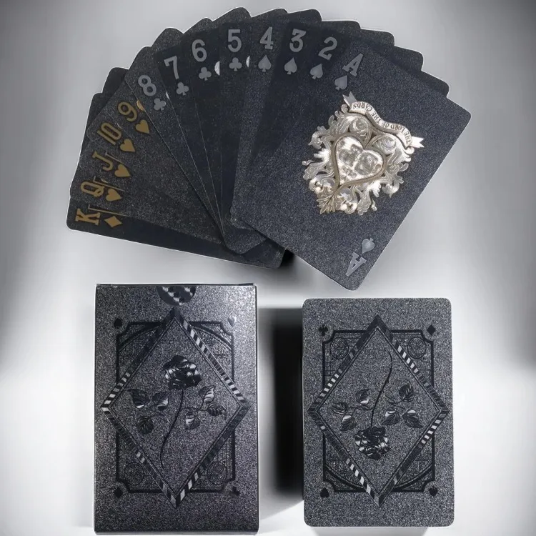 Black Rose Deck Poker Frosted Waterproof Plastic Playing Cards Texas Poker Collection Commemorative Chess Practical Party Gift