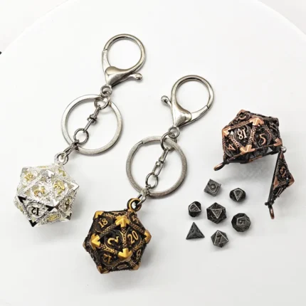 Mini 6MM Metal Flying Dragon Skeleton Dice Keychain Pendant Set Polyhedral Colors