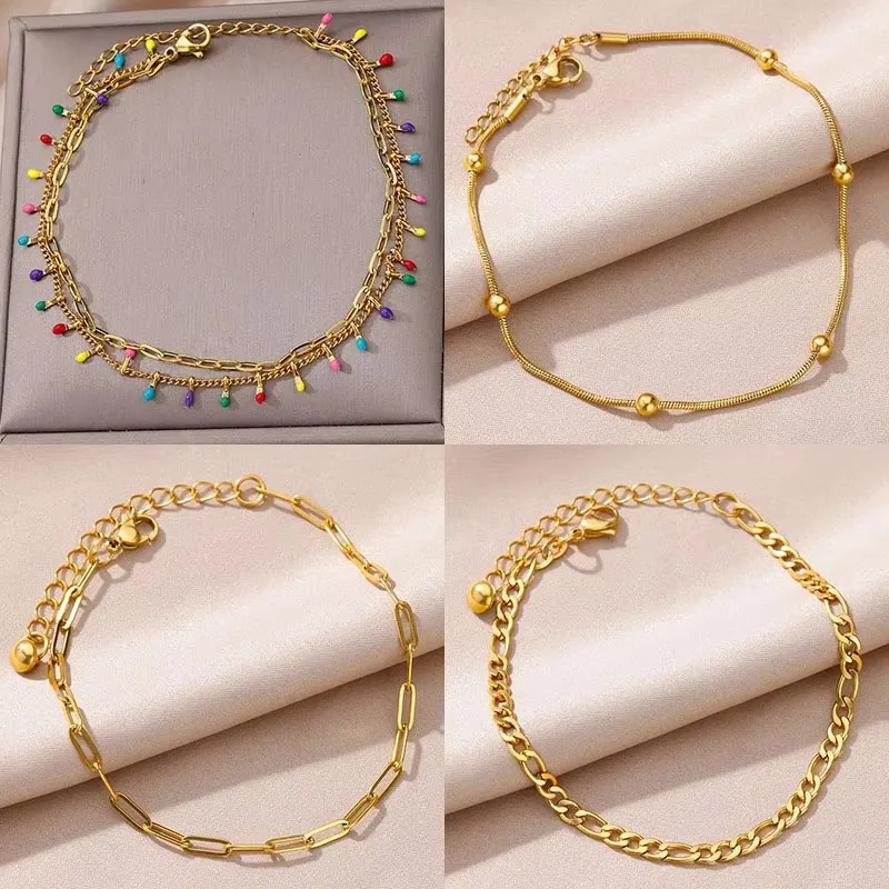 Colorful Boho Drops Anklets For Women Gold Color Stainless Steel Anklet Luxury Wedding Aesthetic Jewelry Gift Free Shipping