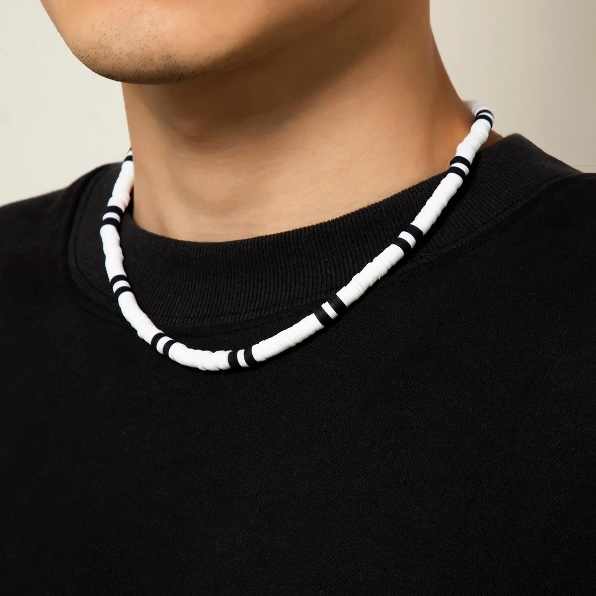33 reviews for Boho Simple Polymer Clay Black and White Choker Necklace for Women Men Summer Vintage Short Clavicle Chain Party Jewelry Gift