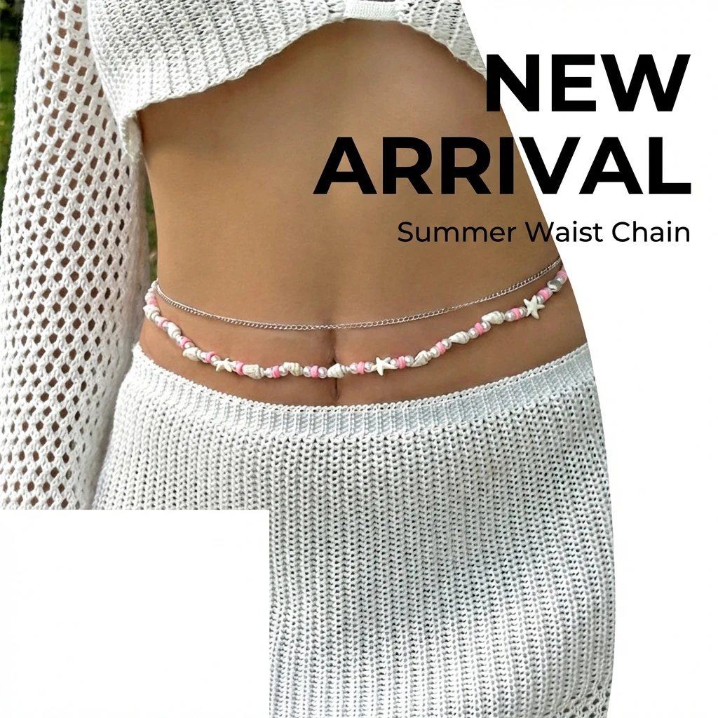 Boho Simple Starfish Conch Seed Beads Waist Belly Chain for Women Summer Beach Bikinis Beaded Body Belt Waistband Party Jewelry