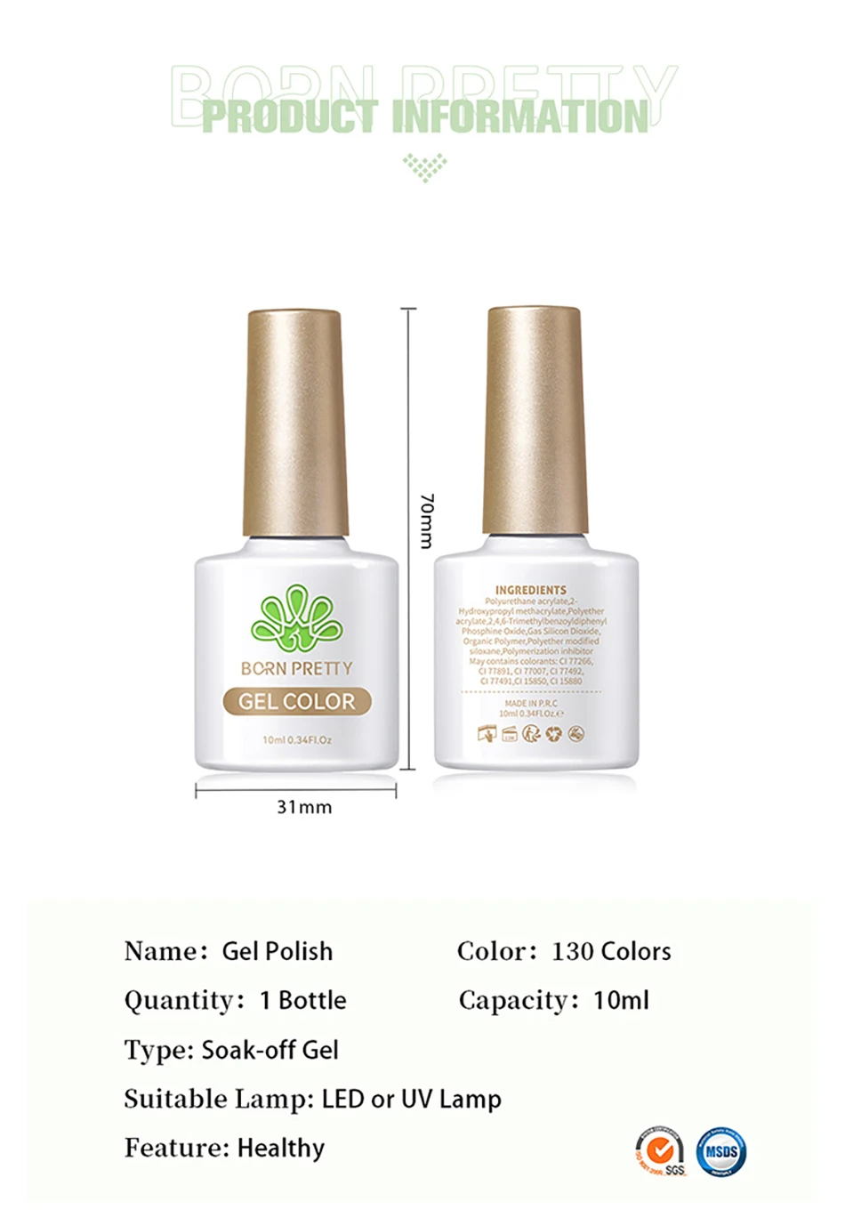 BORN PRETTY 1 Bottles 10ml Gel Polish