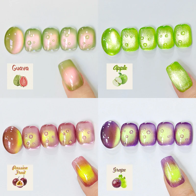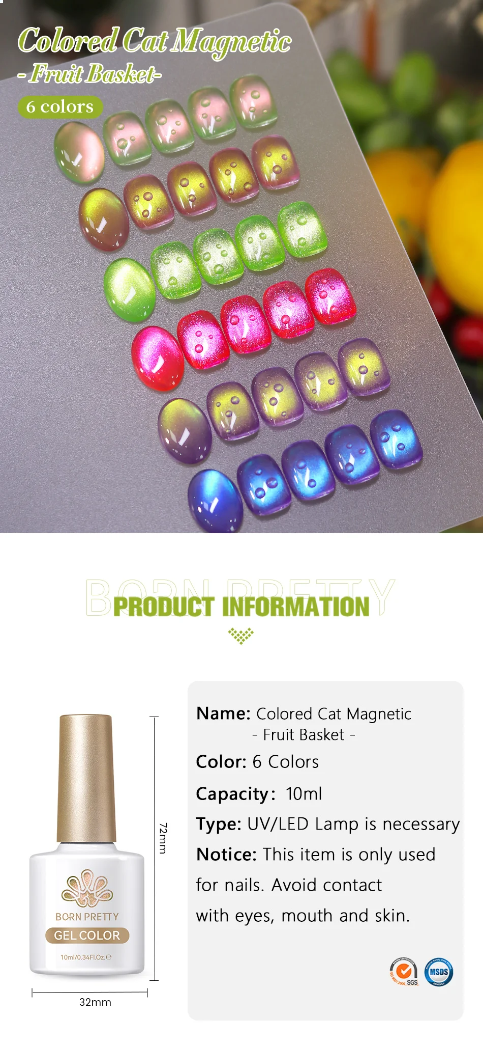 BORN PRETTY 10ml Fruit Green Purple Cat Magnetic Gel Nail Polish 2025 New Whitening Guava Grape Glass Bead Nail Varnish Supplies