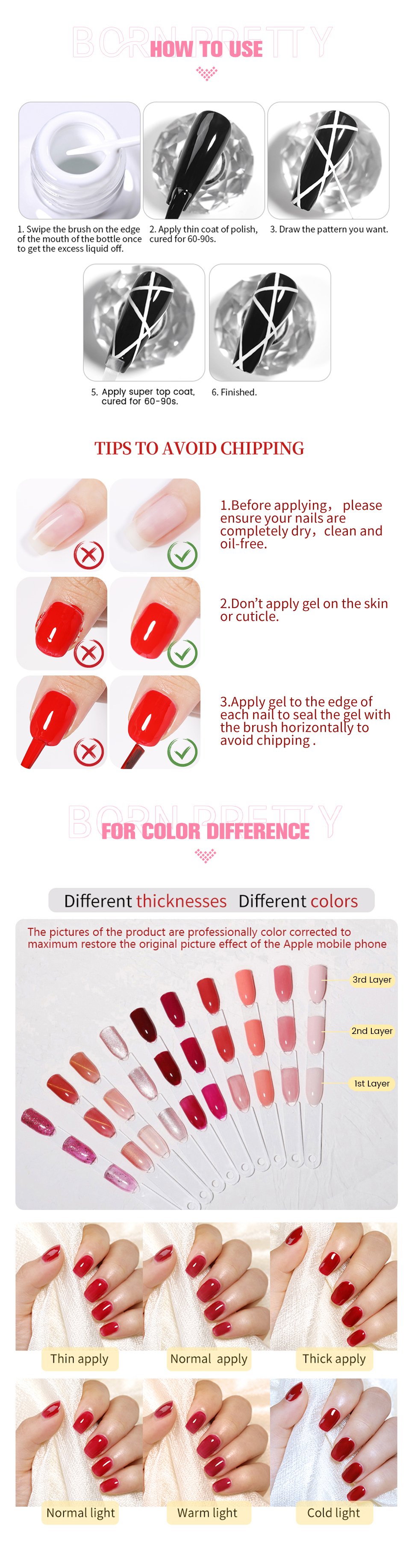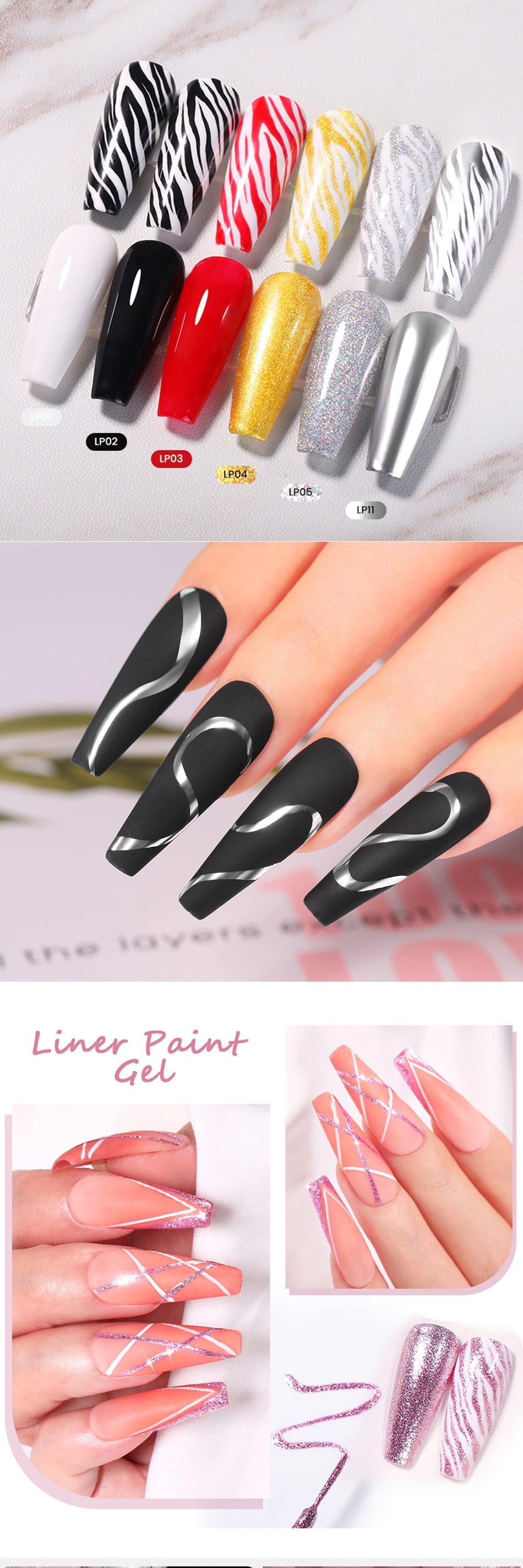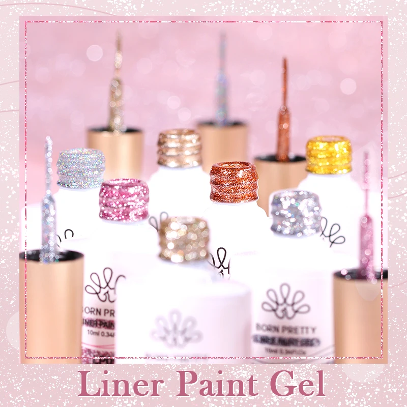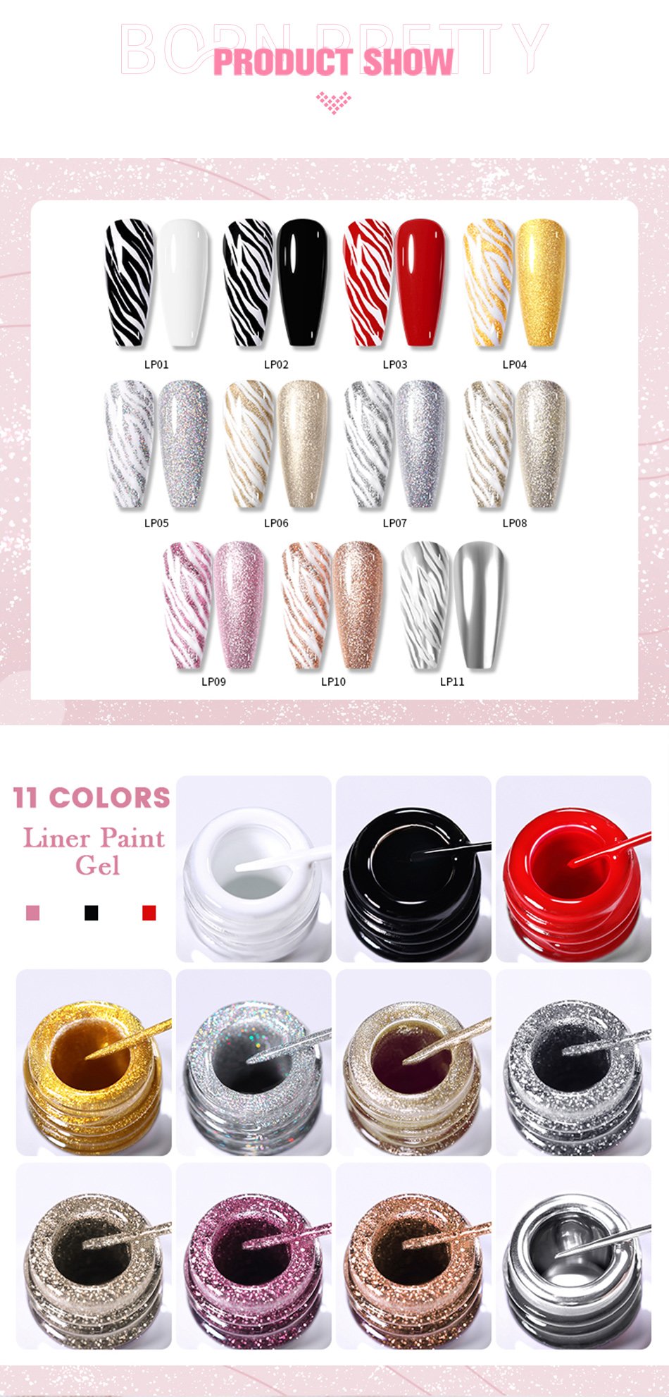 BORN PRETTY 10ml Glitter Silver Liner Paint Gel Nail Polish Line Stripe Gel Vernis Semi Permanent for Drawing Line French Nails