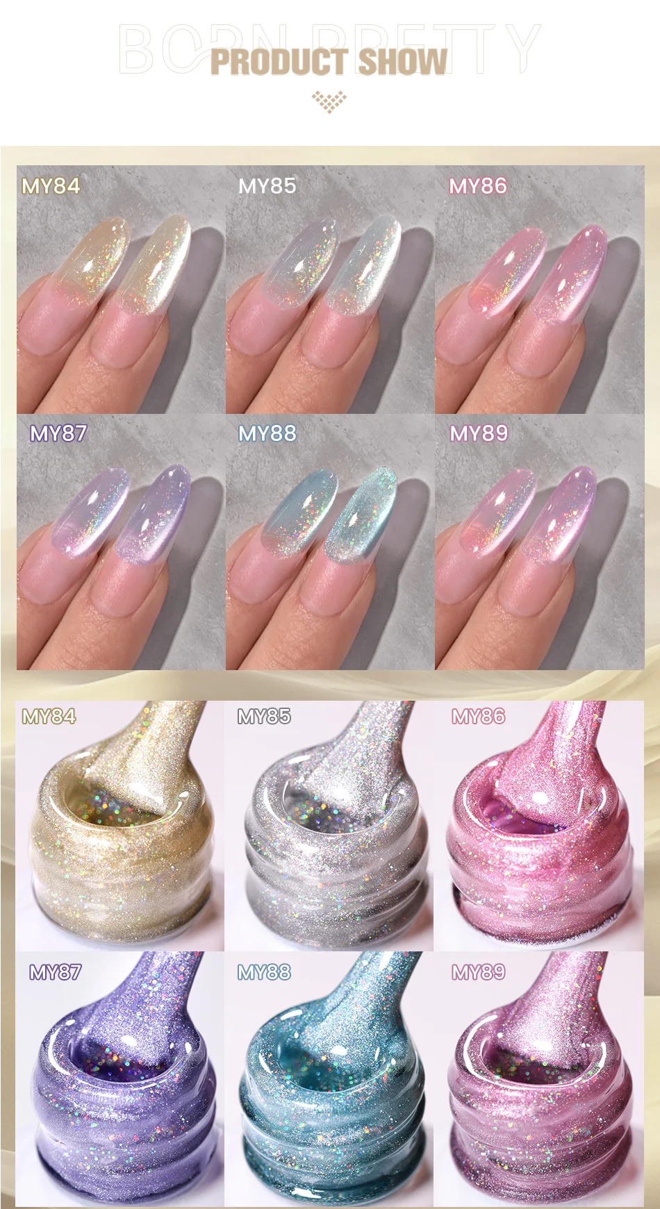 BORN PRETTY 10ml Rainbow Purple Water Light Cat Magnetic Gel Nail Polish Shining Sliver-light Holographics Semi Permanent UV Gel