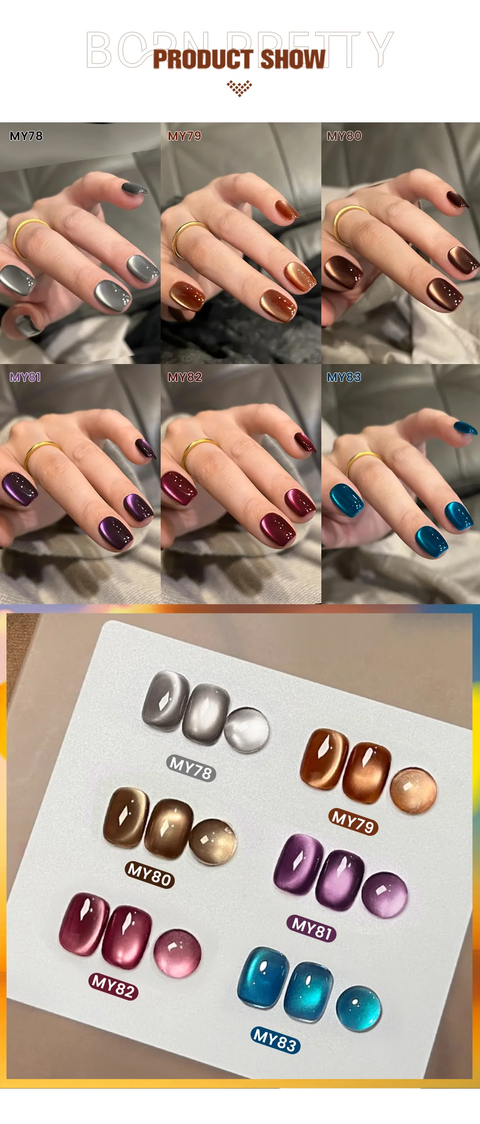 BORN PRETTY 10ml Sunset Gaze Golden Shining Cat Magnetic Gel Christmas Shine Soak Off UV Nail Polish Salon Varnish Manicure