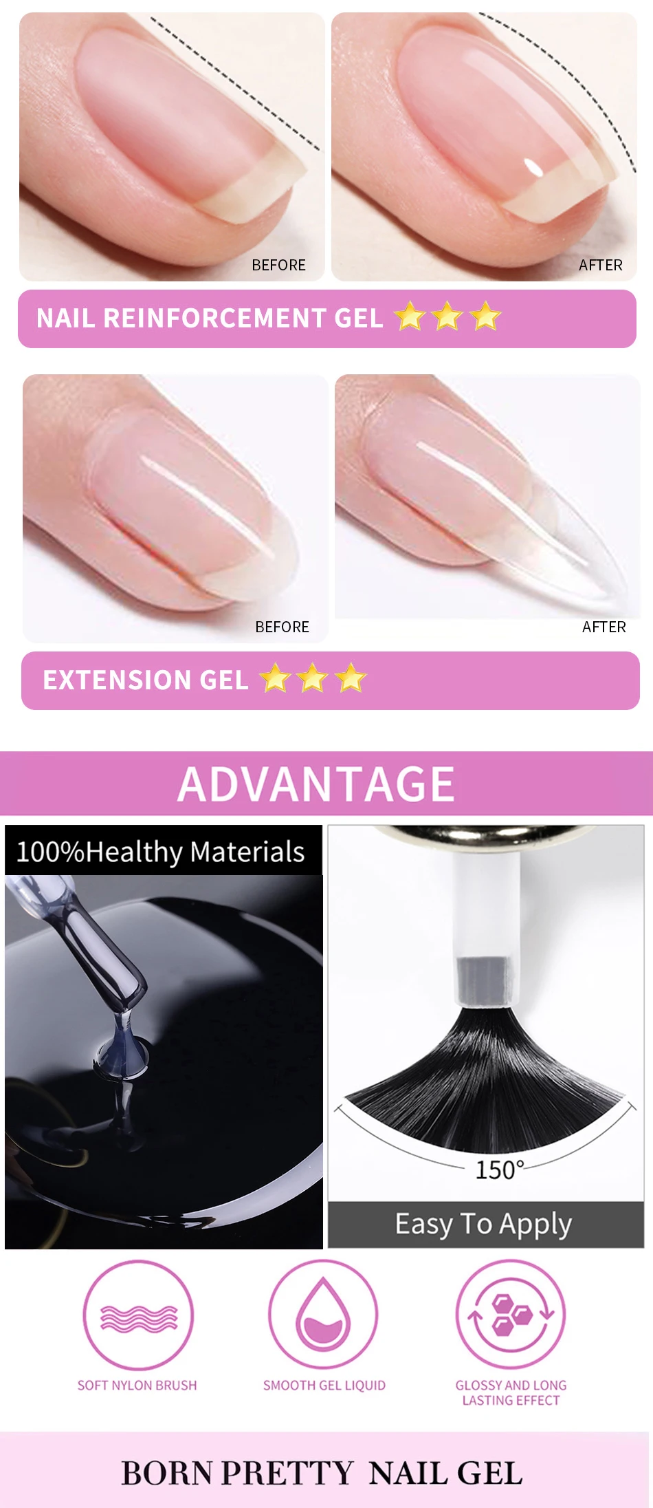 BORN PRETTY 15/10ML 6 IN 1 Nail Glue Gel for Acrylic Nails Soak off Base Gel Top Coat UV Extension Nail Gel False Nail Tips Gel