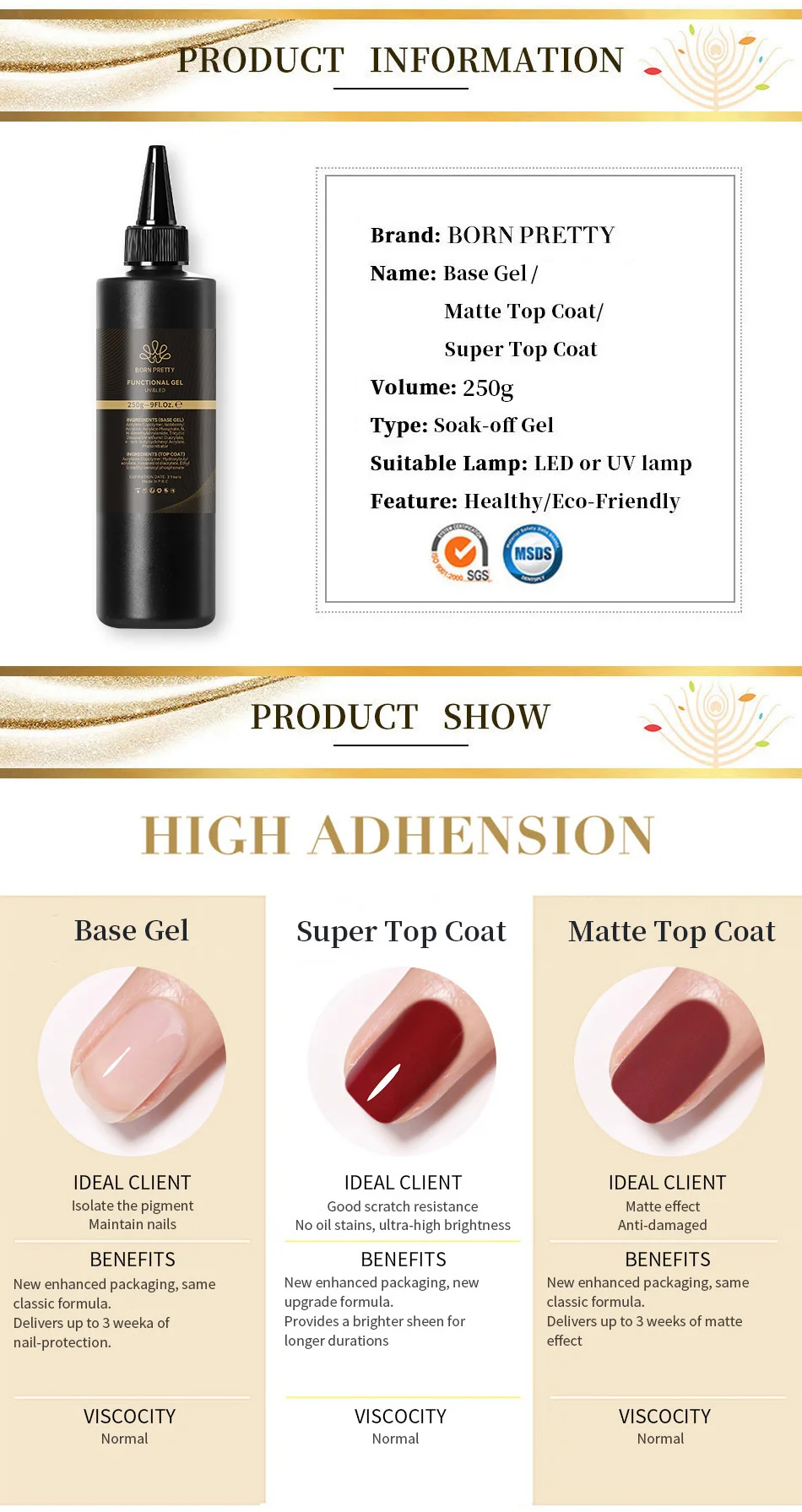 BORN PRETTY 250g Base Gel Super Top Coat Matte Top Coat Gel Polish Soak Off UV LED Gel Varnish Functional Gel Nail Salon