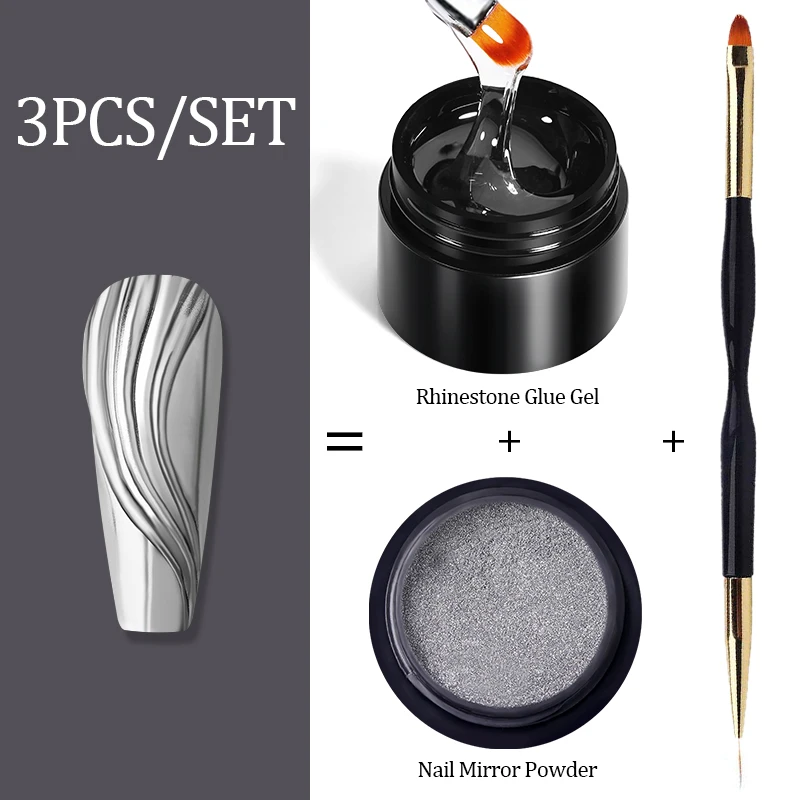 BORN PRETTY 3PCS Rhinestones Glue Gel Set MetalNail Powder With Nail Liner Brush UV LED Transparent Adhensive Glue Gel