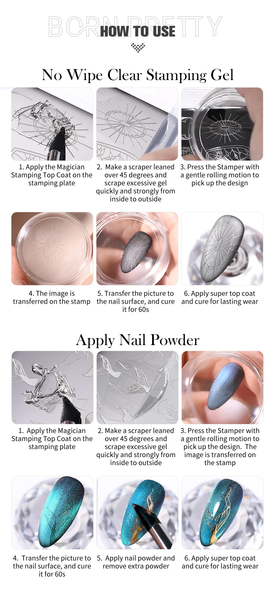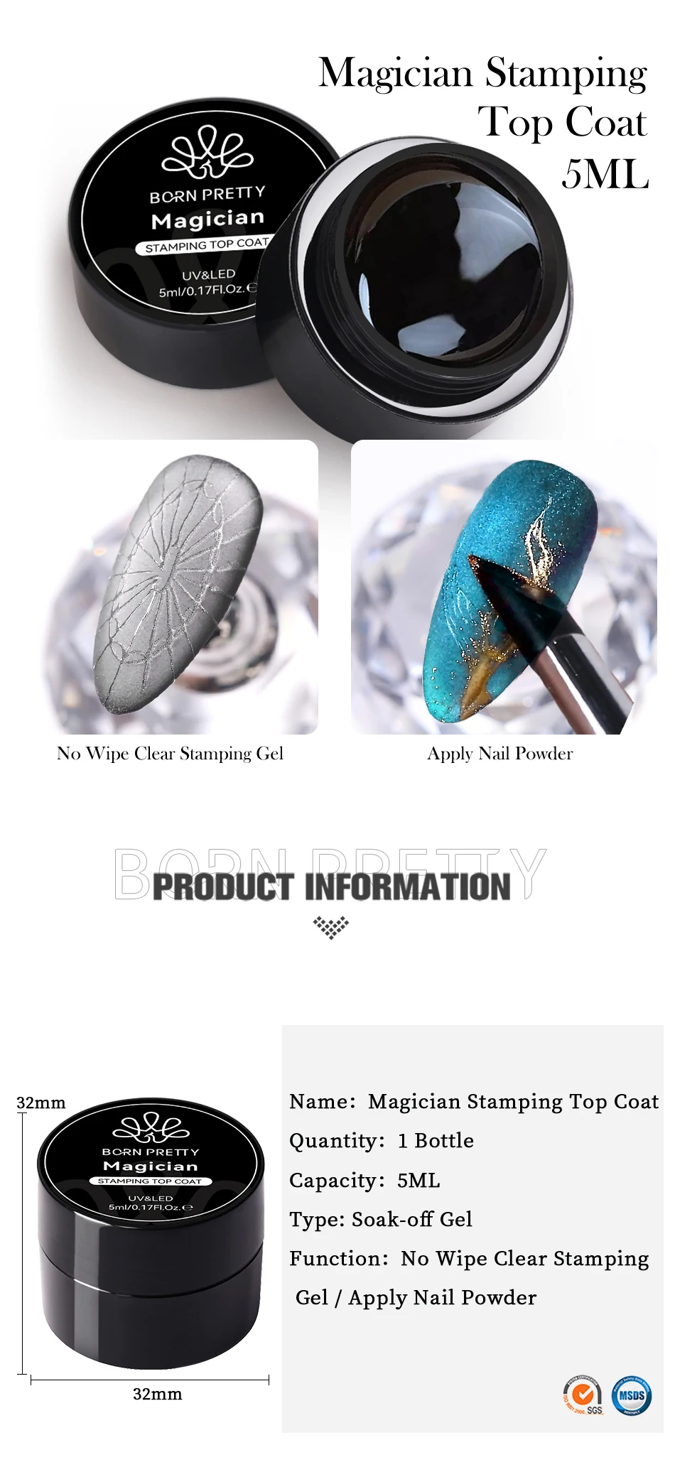 BORN PRETTY 5ml Magician Stamping Top Coat No Wipe Clear Stamping Gel For Apply Nail Powder Transparent DIY Manicure Print Tool