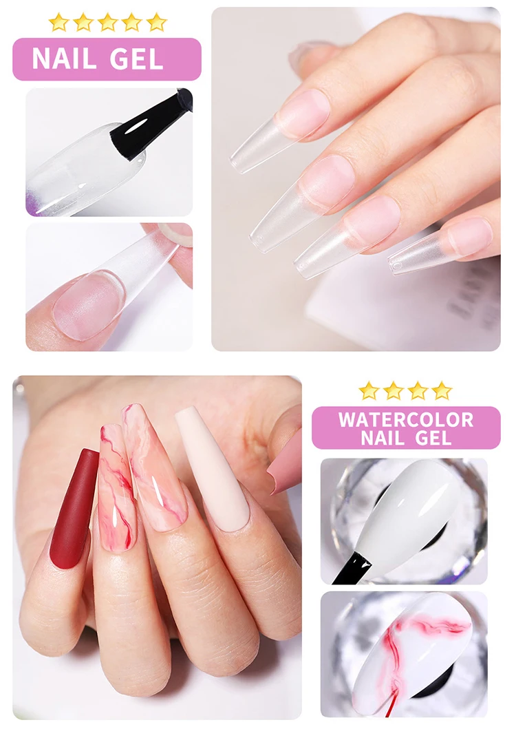 Multiple functions:Used for base gel/nail glue/watercolor nail gel/nail reinforcement gel/extension gel/nail liquid slip solution/color mixing/rhinestone gel