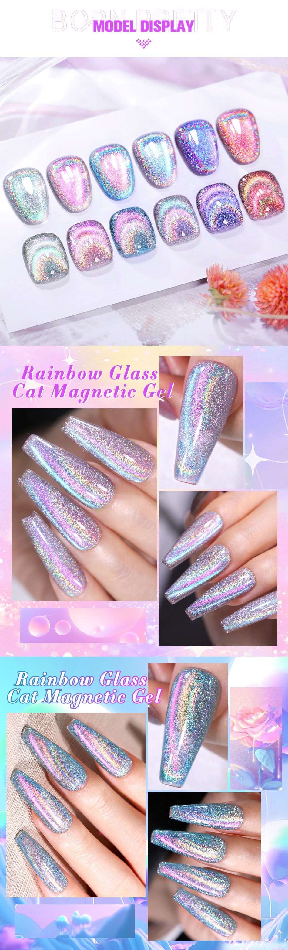 BORN PRETTY 9D Lasers Cat Magnetic Gel Nail Gel Rainbow Magnetic Gel Soak Off UV LED Nail Varnish UV Gel for Nail Art at Home