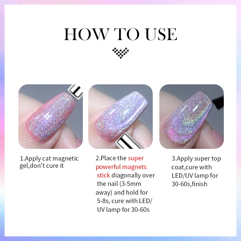 Step3. Apply second layer 9D Cat Magnetic Gel and use magnetic stick push the shape again, then cure in 30-60s.