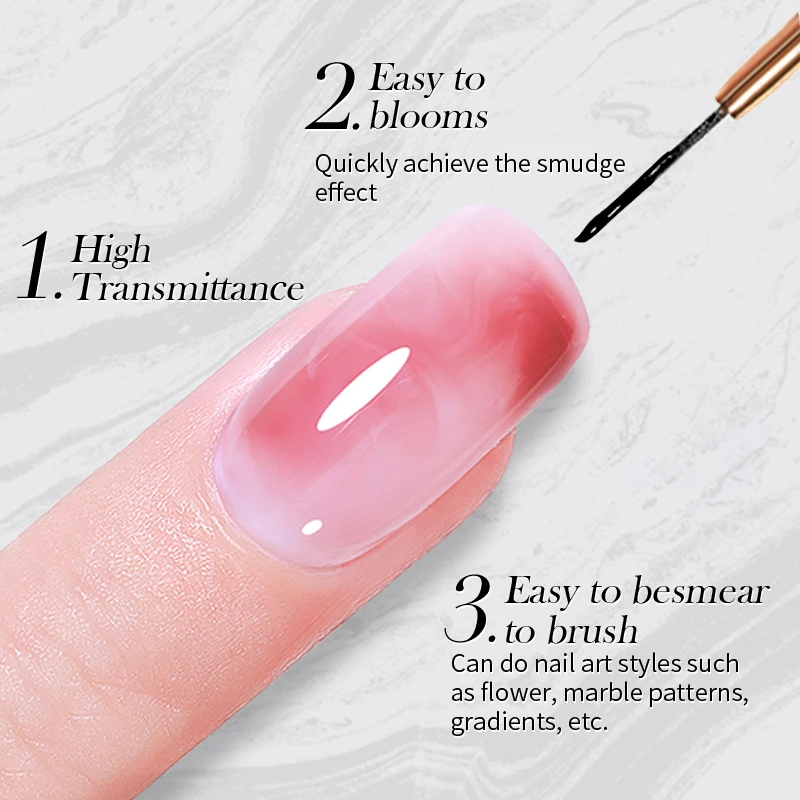 BORN PRETTY Clear Blooms Gel 10ML Soak Off Watercolor Nail Gel Polish for Spreading Effect Marble Gel Nail Polish Painting Nails