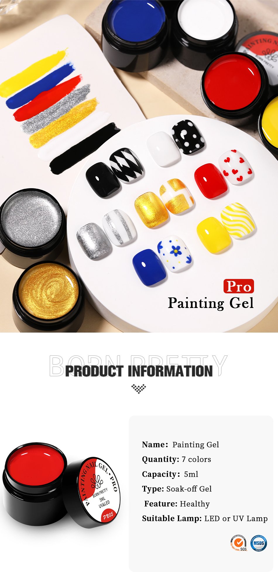 BORN PRETTY Painting Gel 5ml Professional Nail Paint Color Gel Polish For Nail Art UV Gel Varnish