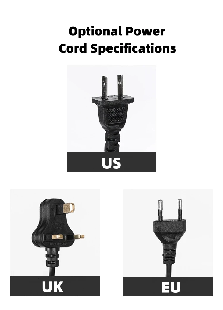 • US/EU Plug :Equipped with a US, EU, or UK plug, this accessory is designed to cater to a global customer base, enhancing its utility and reach.