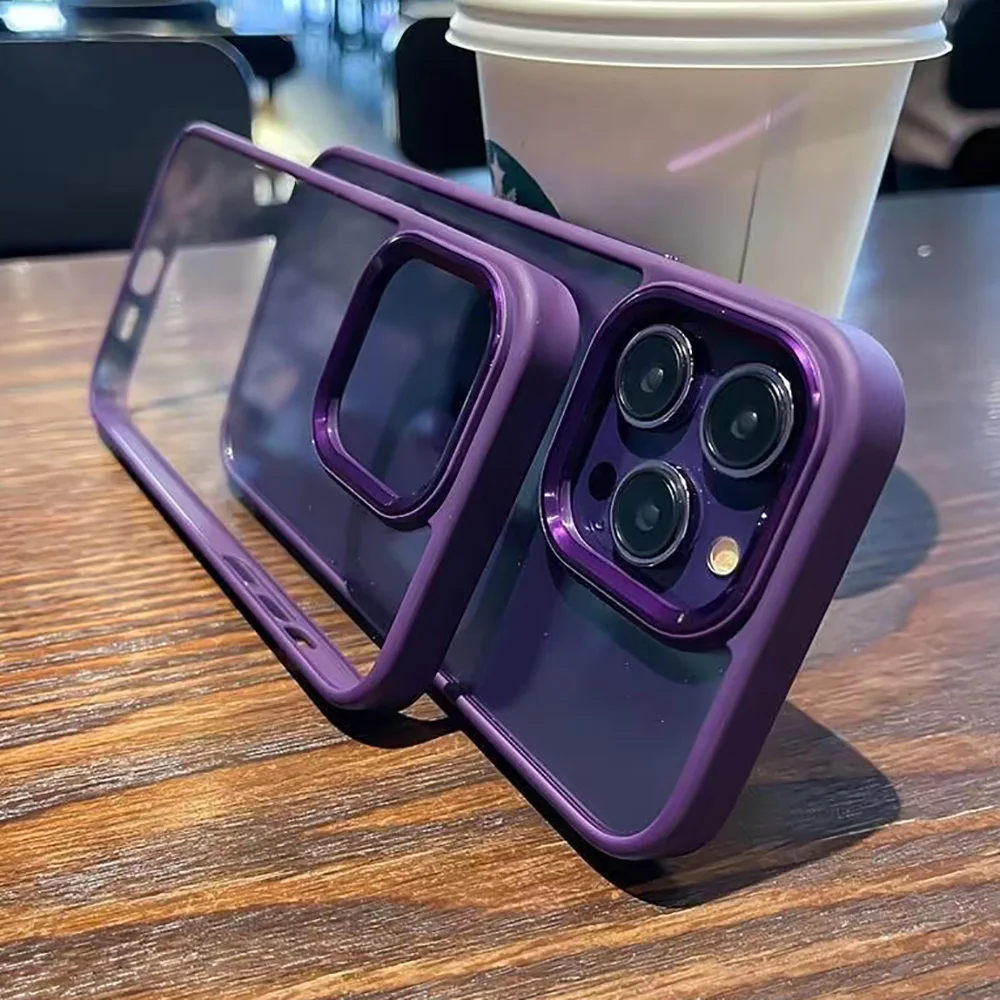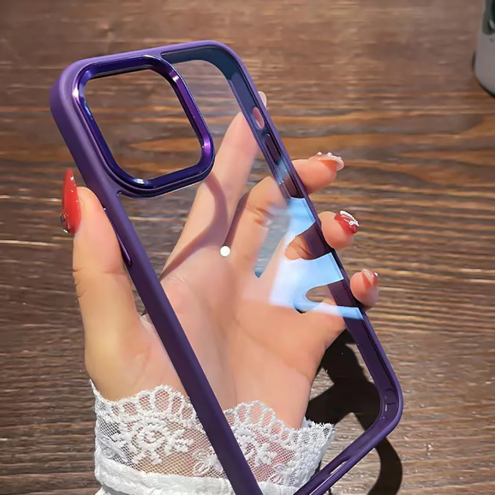 Candy Color Purple Phone Case For iPhone 16 Pro 13 11 15 12 14 Pro Max 6 6s 8 7 Plus XR XS X SE Electroplated Clear Cover Funda