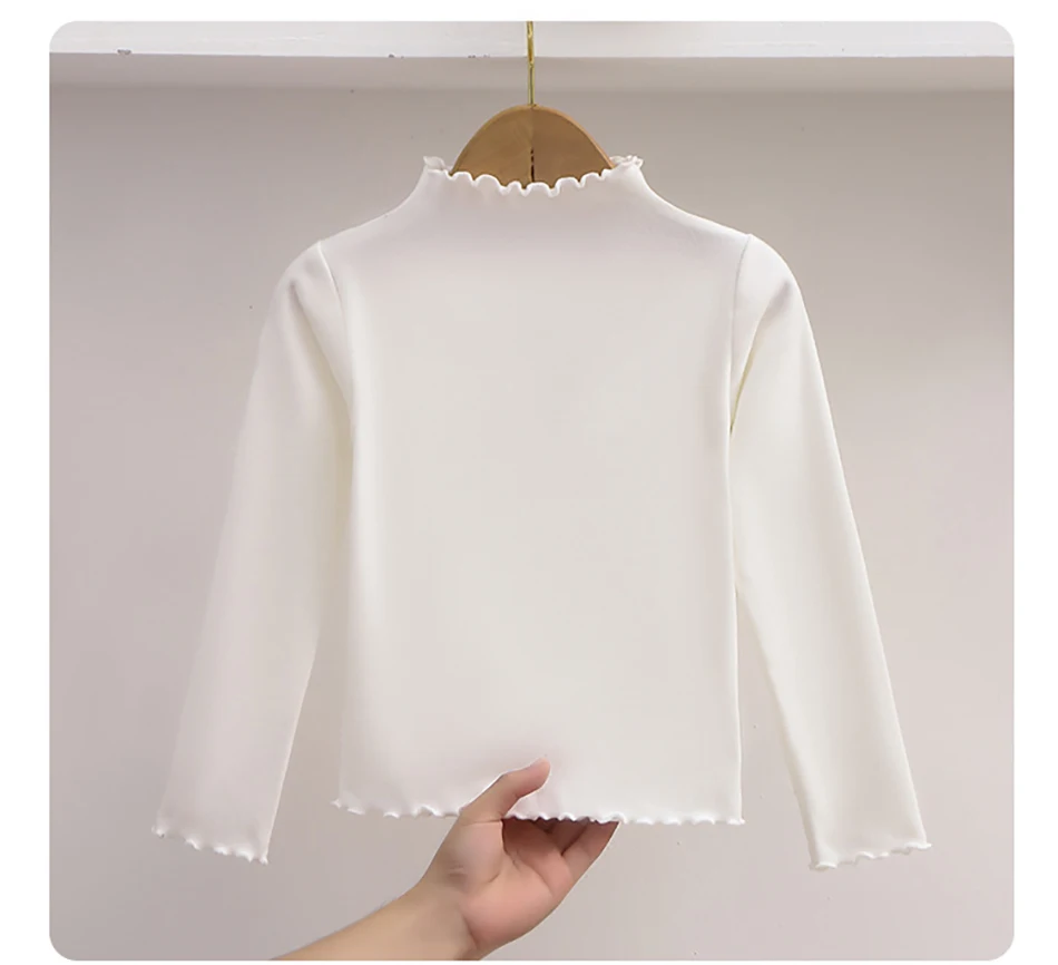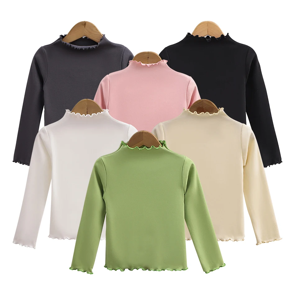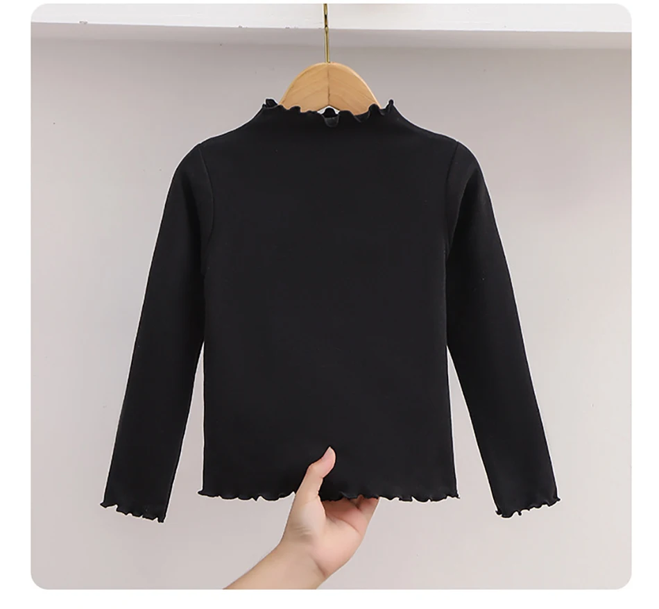 Name: Children Clothing New Girls Base Shirt For Autumn and Winter Children Trendy Black Fungus Edge Solid Color Long Sleeved T-shirt