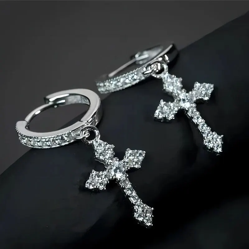 Classic Cross Point-Drill Crystal Replaceable Exquisite White Color Earrings For Women Men Hiphop Party Jewelry Gifts