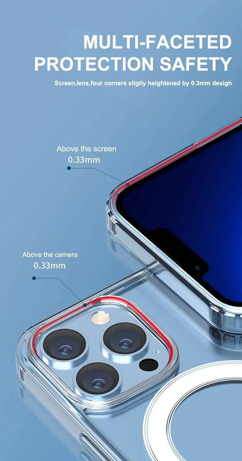 【38+2 Strong Magnets】 this Magsafe case for iPhone is built in 38 magnets, which can hold phones very sturdily while charging. You can still Magsafe charge your Phone without any problem even while driving or playing games, regardless of the road vibrations or bumps.