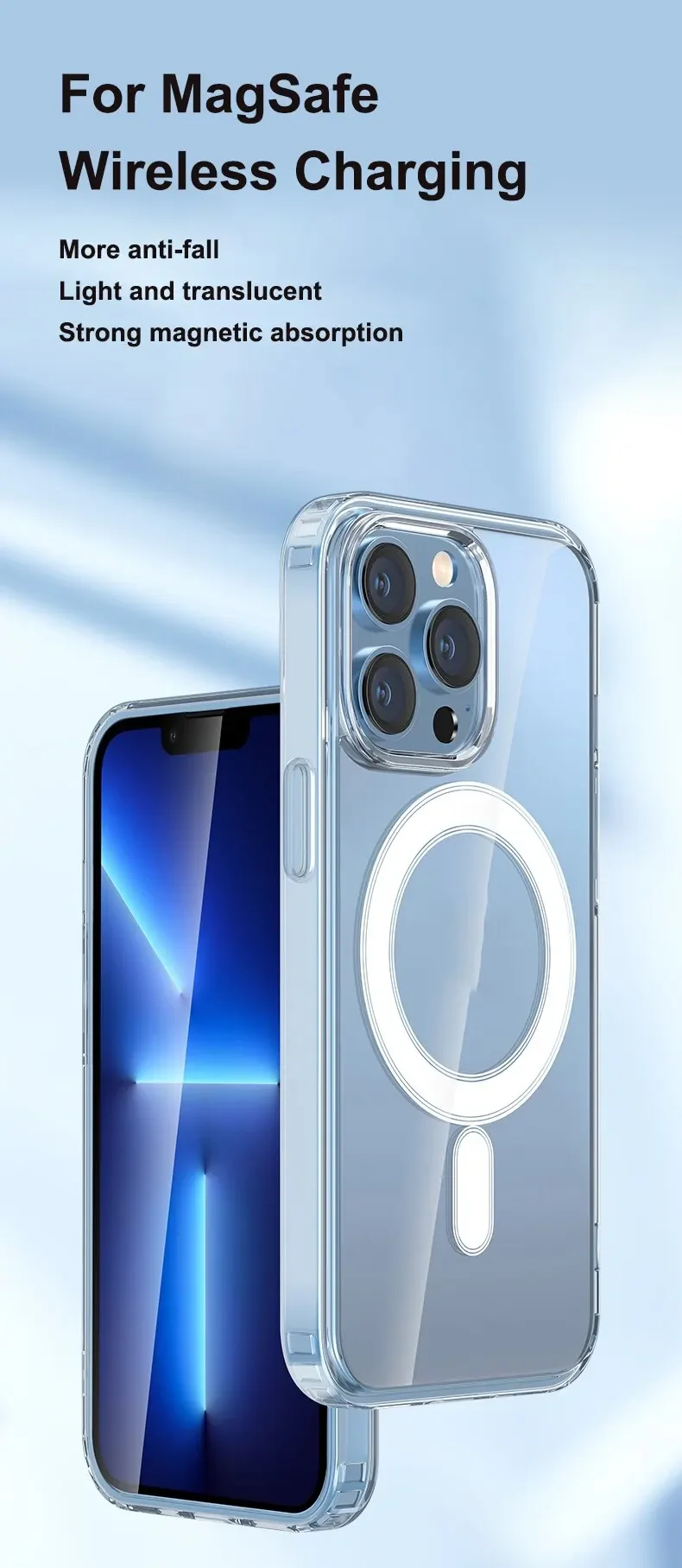 【Compatible with MagSafe】38+2 built-in strong magnets make your Phone work well with any kind of device compatible with MagSafe. You don’t need to remove the case, it keeps all functions of MagSafe (e.g. 20W high charging speed).