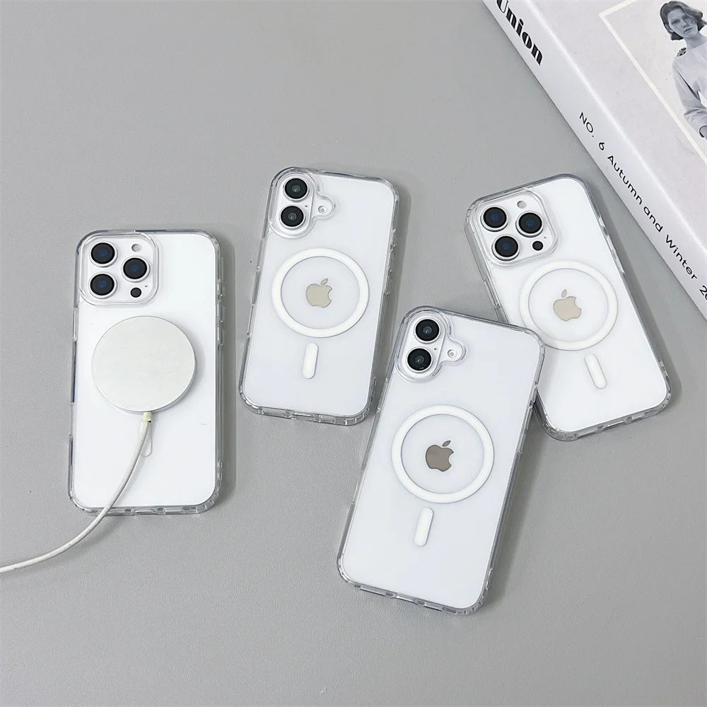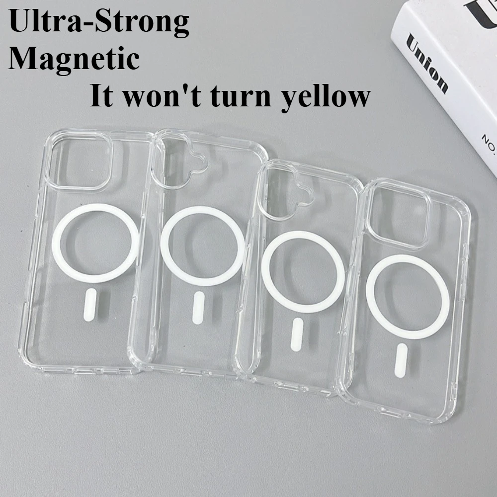 Clear Ultra-Strong Magnetic Phone Case for iPhone 16 Pro Max 11 12 13 14 15 -Anti-Yellowing Durable Transparent Protective Cover
